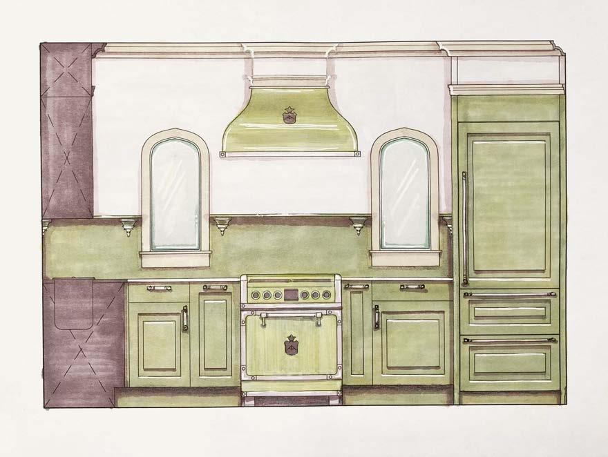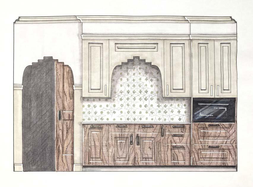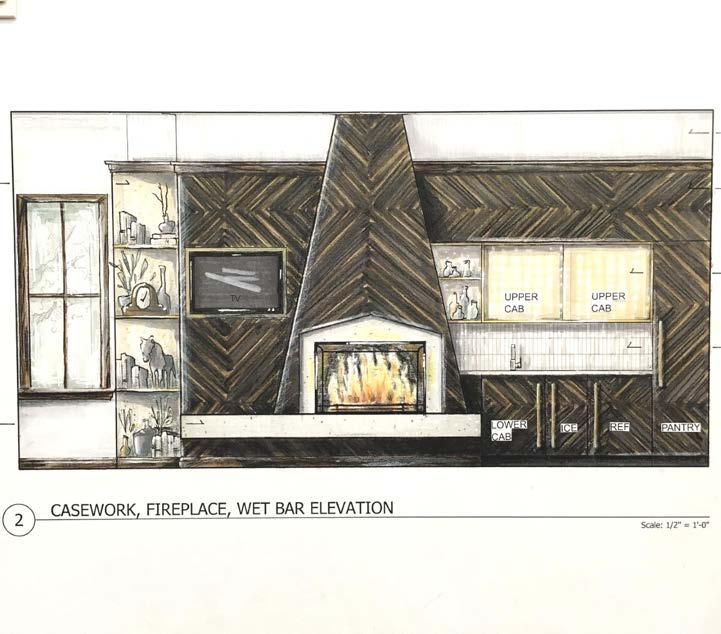 HAND RENDERED MEDIA WALL + WET BAR ELEVATION