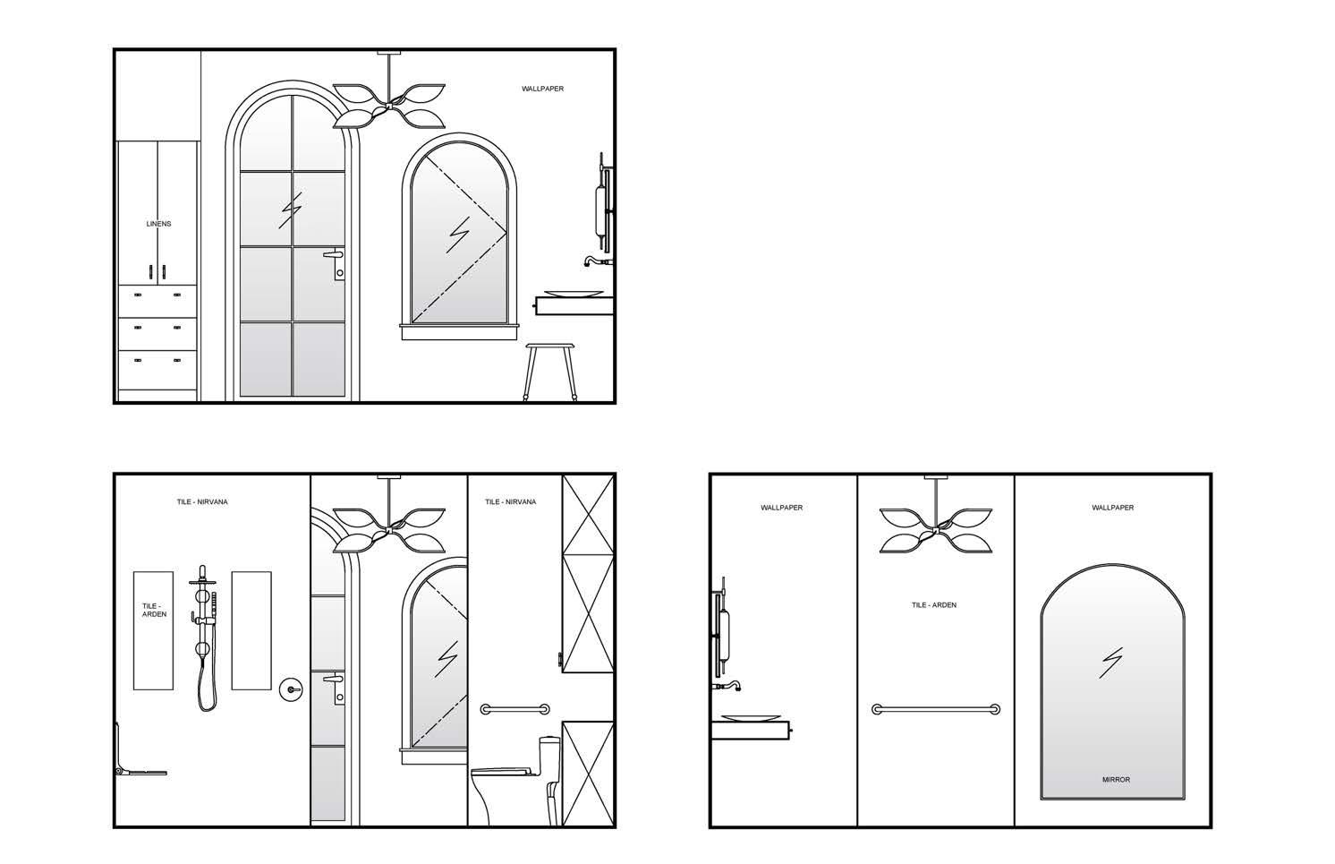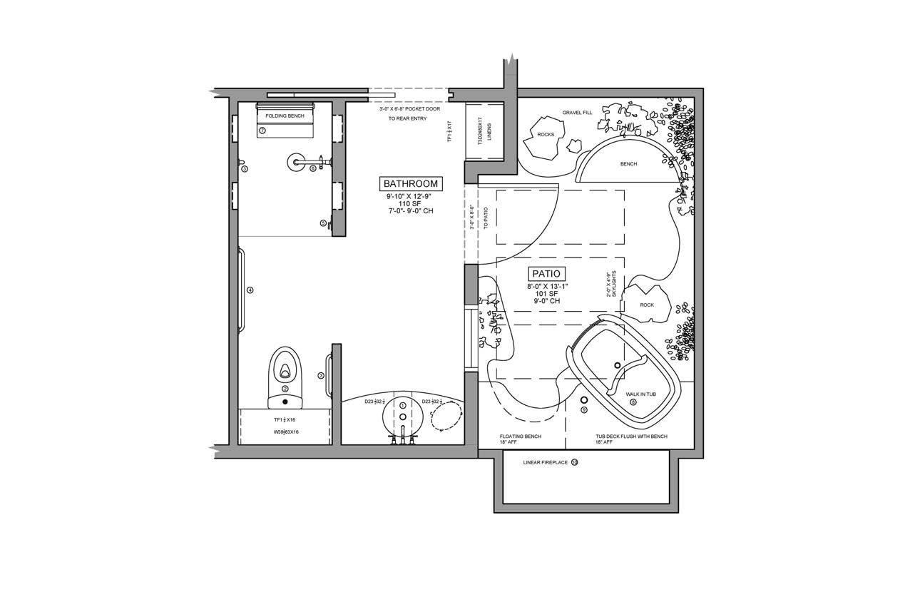 In addition to their kitchen, the Doshi-O Brien family has also decided to remodel their library turned bathroom of their foursquare home to be a serene, family-forward space with accessibility in mind first and foremost. Their in-laws, who have mobility limitations, visit for extended stays and requested a barrier-free shower and seating throughout for rest Ample storage, high functionality, a seamless connection to the outdoors, and sustainable selections are also critical to the design