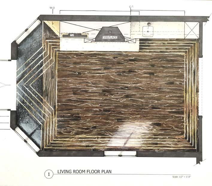 The Carman family decided to redesign their recreation room in their 1927 Tudor Style home in Portland, Oregon. The design includes new flooring, a media wall, and a wet bar with plenty of storage and display Honoring the traditional Tudor style of the home’ s heavy woodwork, high paneled walls, and deep, sophisticated palette, the design took shape with Tudor silhouettes in a contemporary style to modernize the aesthetic and functionality for present day needs. Classic shapes such as the Tudor Arch over the fireplace are modified, suiting the linear theme of architectural elements proposed in this design