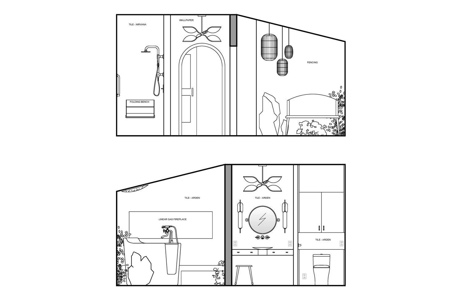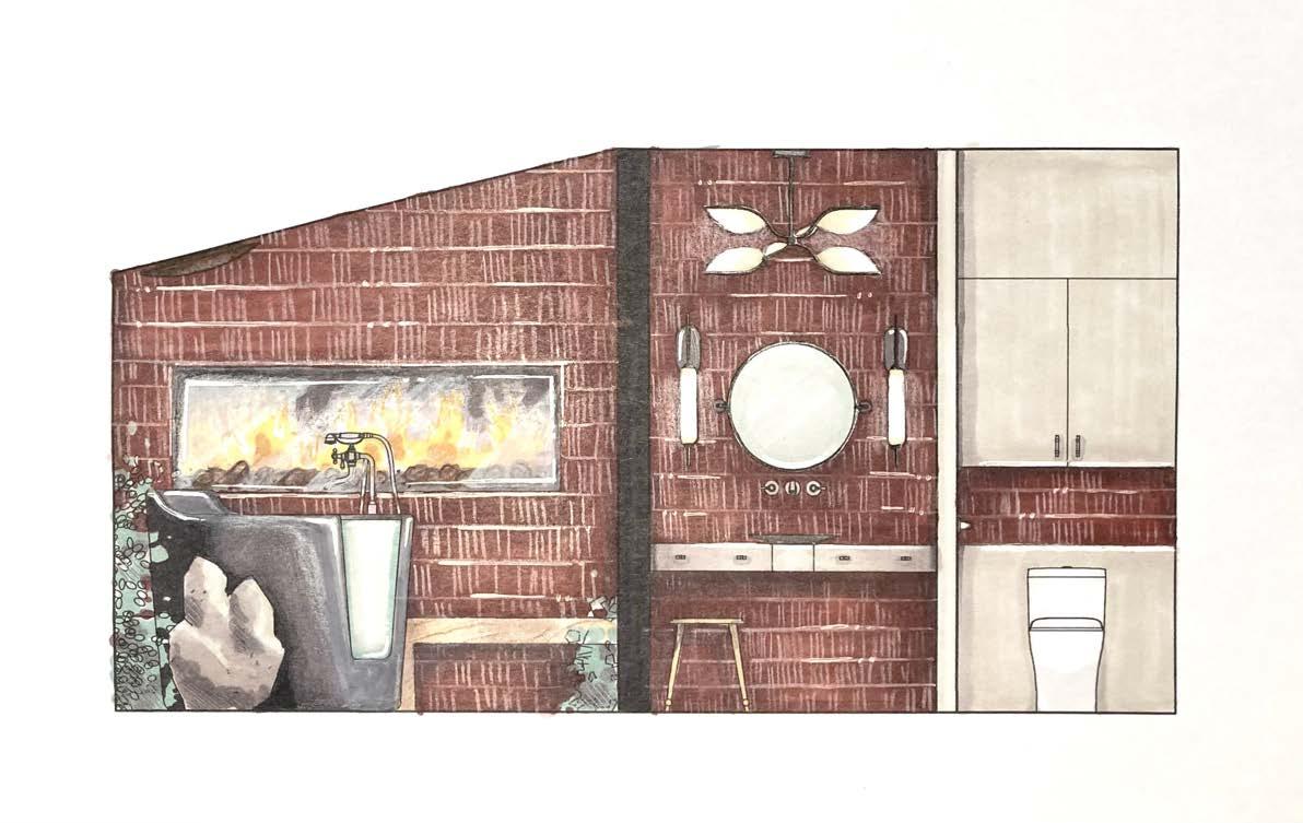 RENDERED SINK + FIREPLACE WALL ELEVATION
