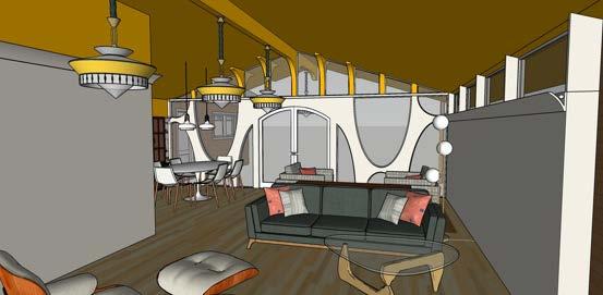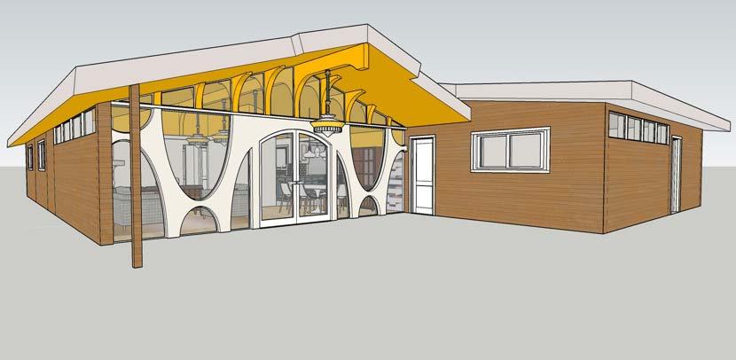 The "bow-tie" elements seen in the client's furniture collection served as inspiration for the patio feature wall and many other curved architectural elements and furniture silhouettes throughouttheliving+diningroomdesign.