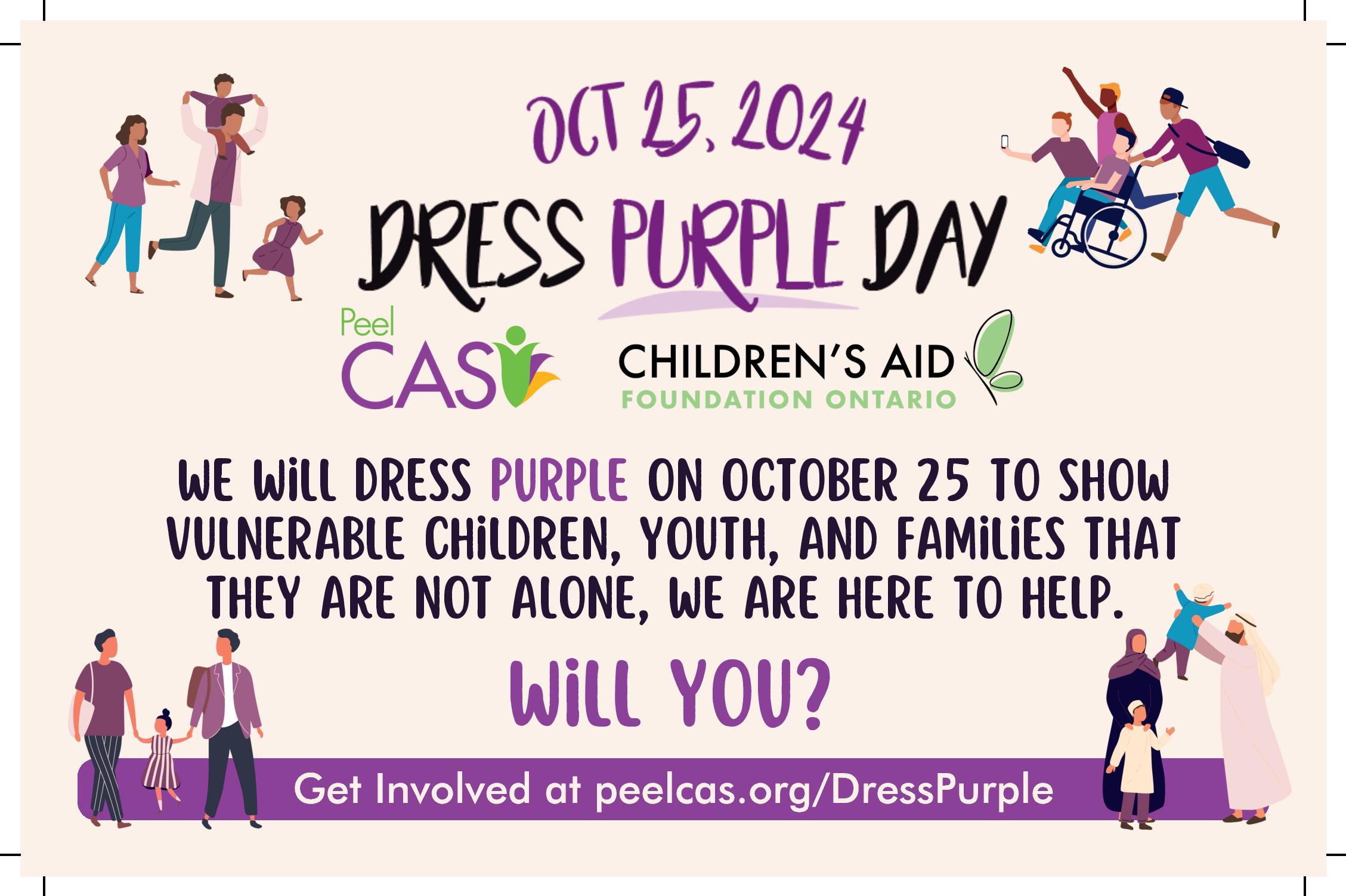 Every October Children’s Aid Societies across Ontario raise awareness about the important role that individuals and communities play in supporting the equity-deserving children, youth, and families we work alongside through the provincial Dress Purple Day campaign.