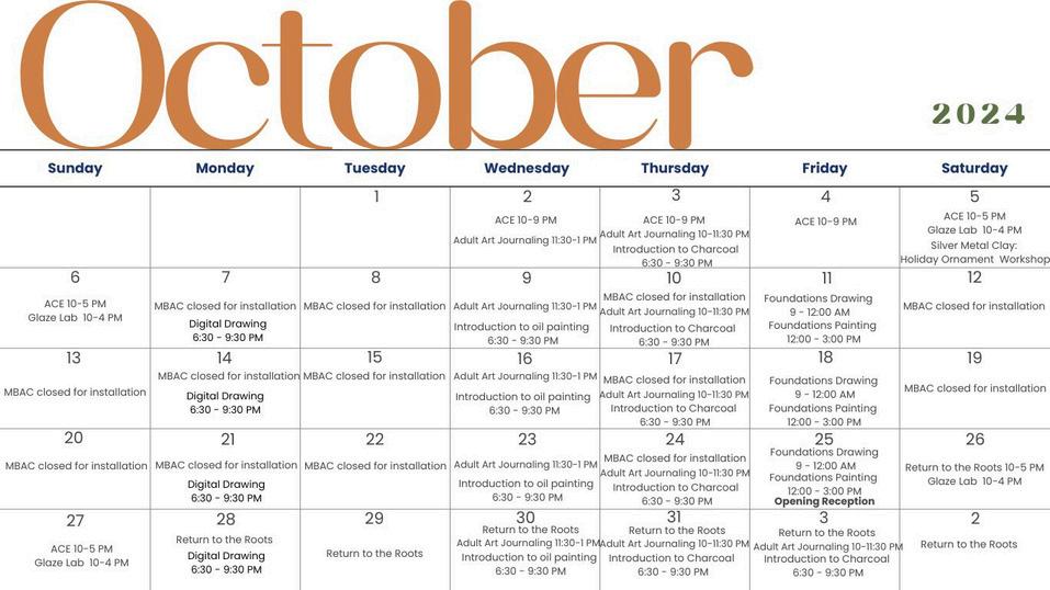 To view the Cultural Arts Calendar please visit: CALENDAR