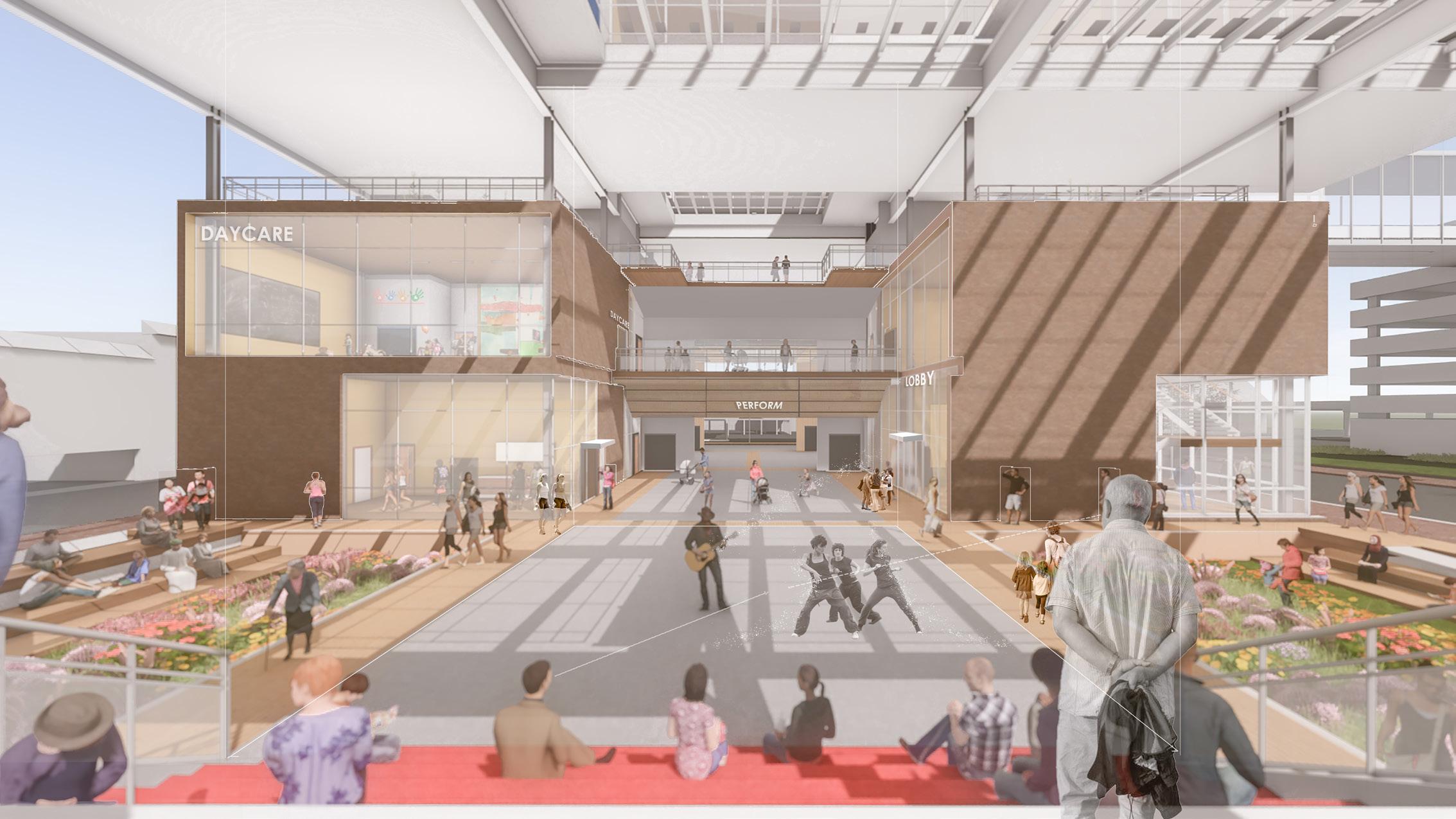 “A Framed Story” serves as a community hub and tells the story of Marietta Square through the use of historical materials. This project looks towards the future of its residents and encourages them to interact with their built environment by creating the gesture of lifting the project’s program above the ground level to foster public space and create social engagement. The project also creates new stories that represent the future of Marietta through sustainability in our water, solar, wind, and material stories. Overall, the project becomes a celebration and the heart of the people of Marietta, Georgia.