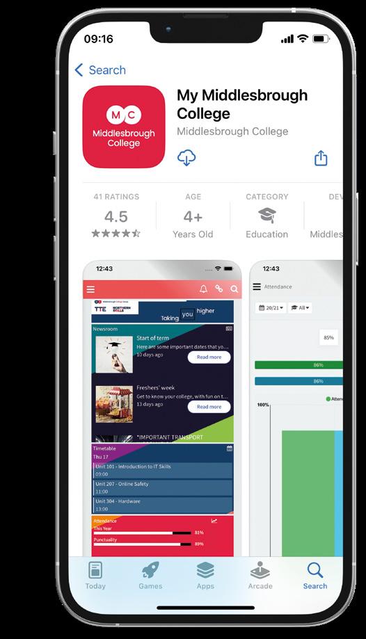 When you become a student with us, we will help you download the My Middlesbrough College app on your phone and laptop as this is our primary method of communication with you. You can find lots of information on the app about your specific course and about what is happening in the College.