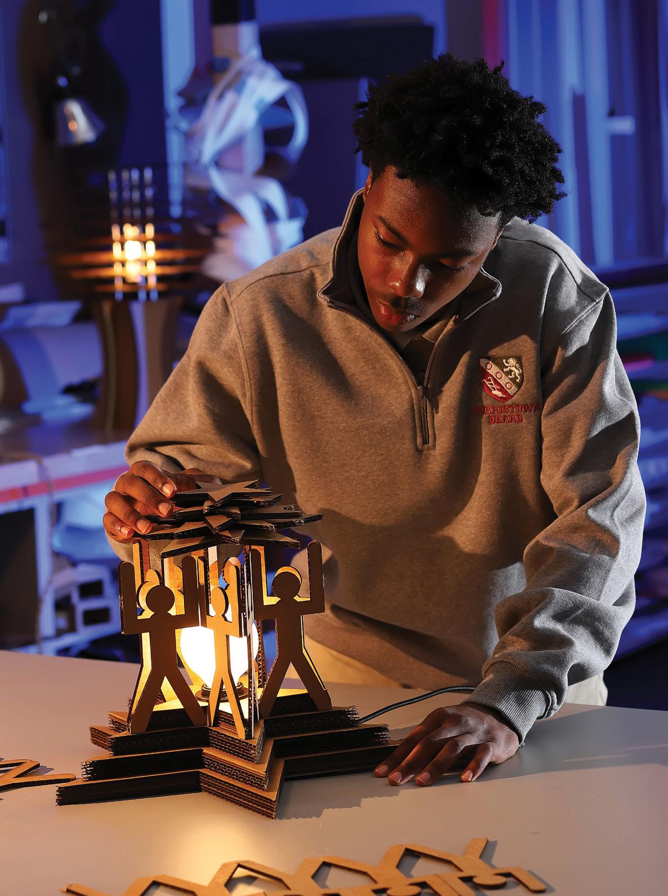 Stepping across the quad, the glass-encased Math & Science Center is our 25,000-square-foot facility that houses modern math and science classrooms, research and DNA laboratories, and gathering and work spaces. It also houses a gallery, which recently featured the art of several alumni. Tucked beneath the Dining Hall is the Center for Innovation & Design (CID), where students experiment, collaborate, design, build, and problemsolve in multi-disciplinary projects.