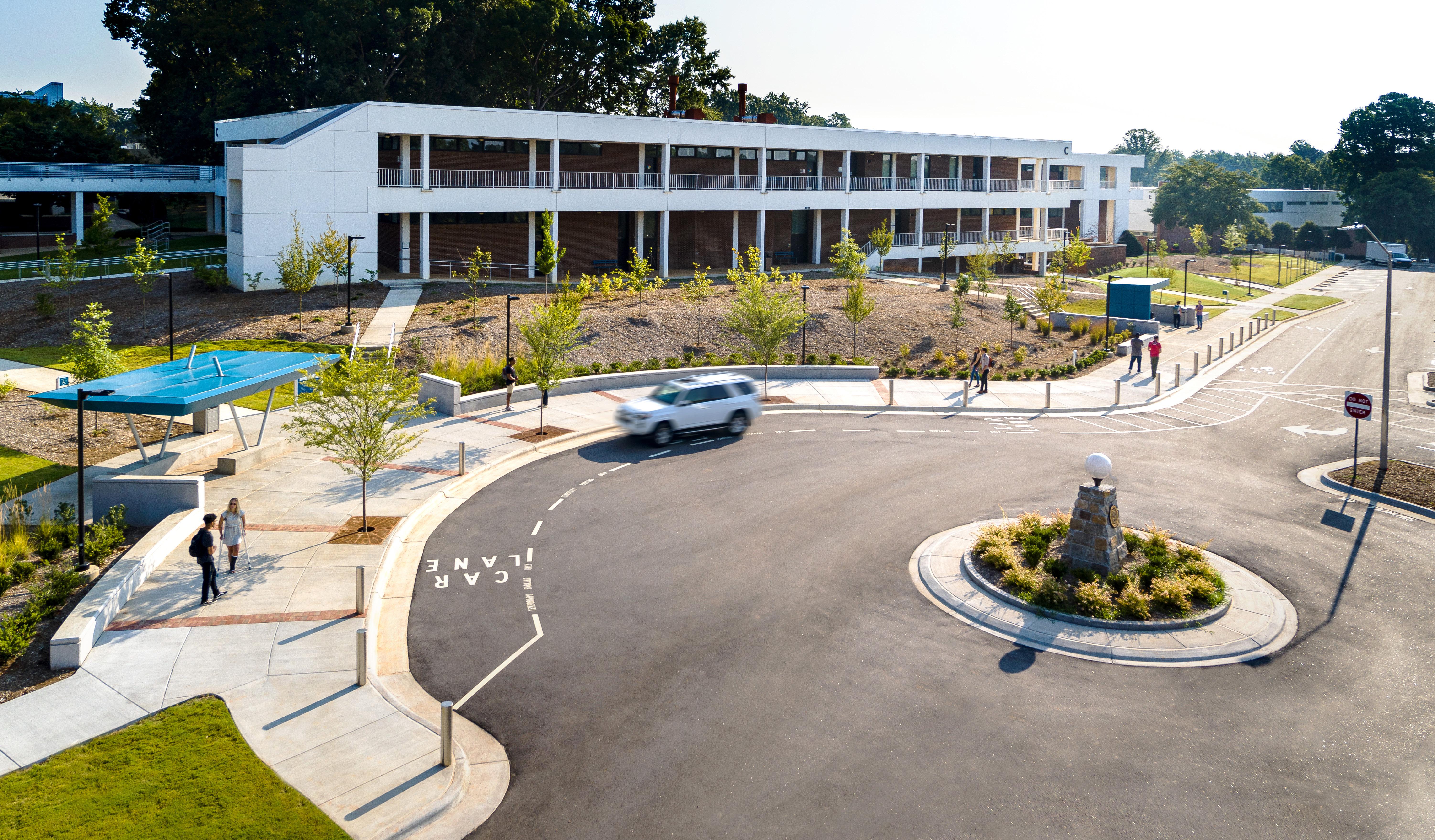 Located along the southern edge of the Southern Wake Campus, the new Southern Loop Road will serve as one of the main entries into campus with the completion of I-540. McAdams is providing multidisciplinary planning, design, surveying, SUE and environmental services including the design of the two-lane access road and associated sidewalk; addition of a stop light at the entrance to campus from US 401 as well as turn lanes, median improvements and drainage improvements; and full depth pavement repair and replacement of existing broken curve and sidewalk in parking areas.