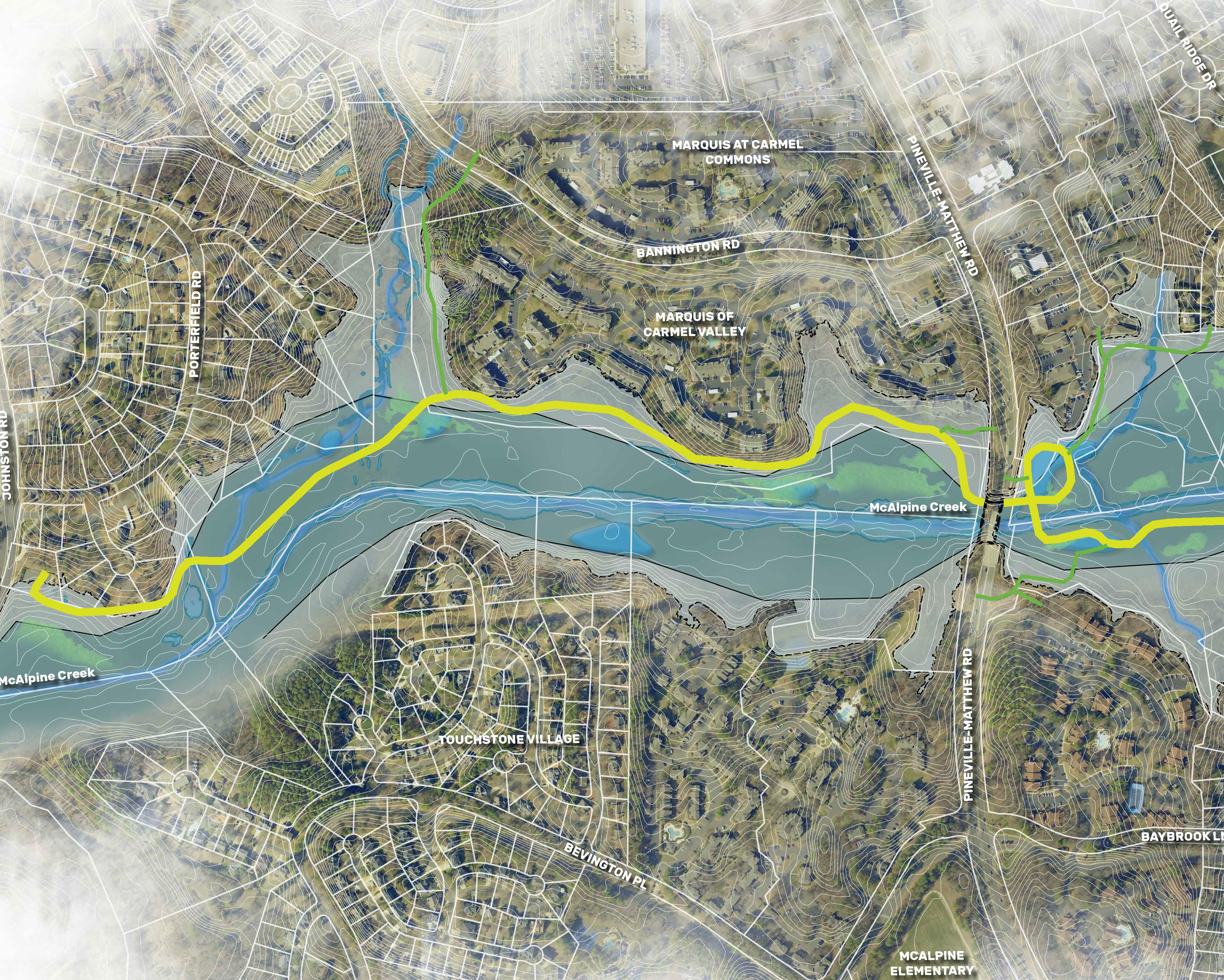 McAdams worked closely with Mecklenberg County to deliver a critical section of the Carolina Thread Trail system to create key east-west connections across southern Charlotte. McAdams provided planning, environmental, design and construction services for 2.5 miles of greenway including two bridge crossings, several sections of boardwalk with concrete decking and additional parking at a new trailhead.