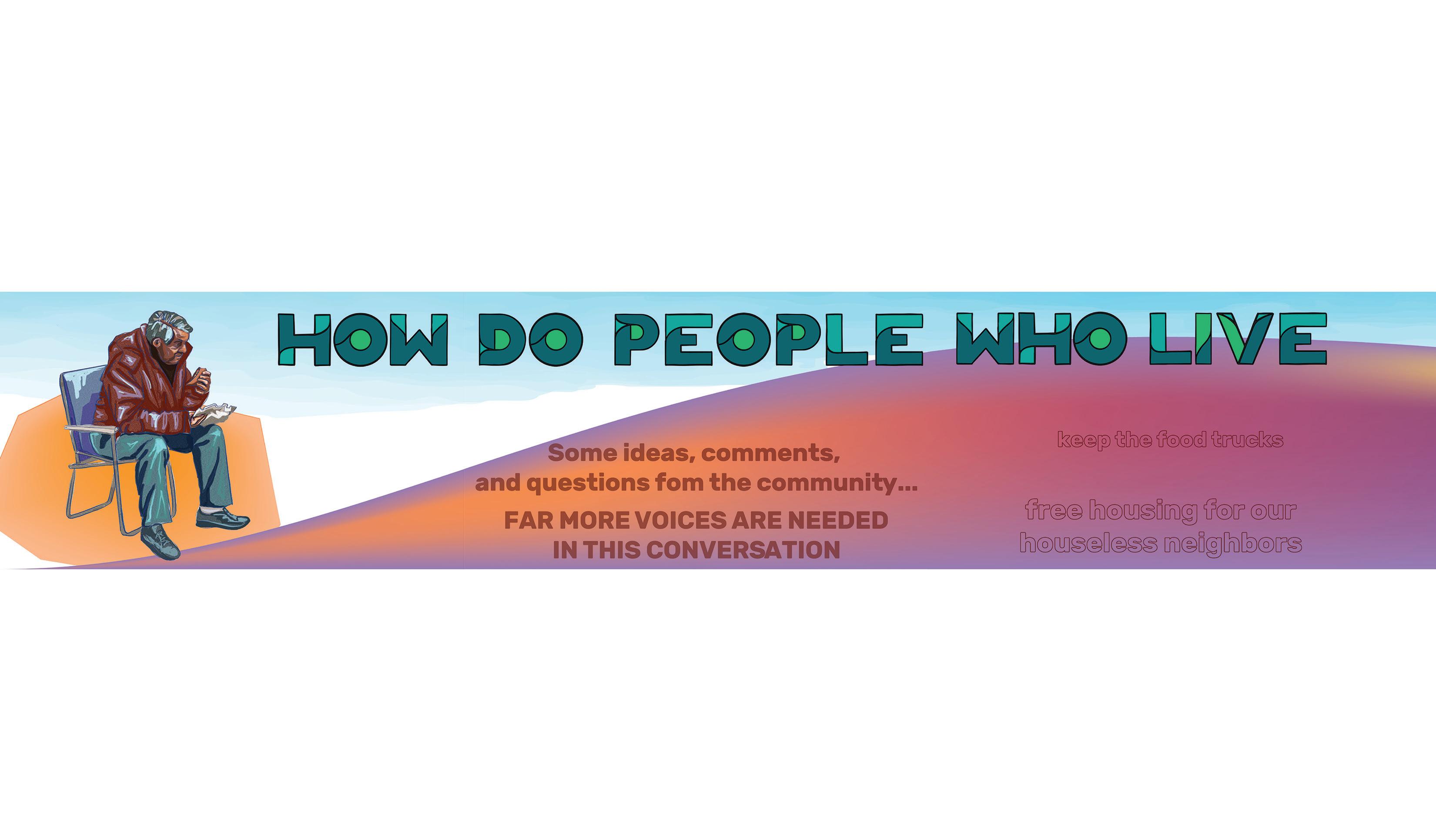 Mashruuca Great Streets, waxaan miis dhignay Suuqa Whittier Really Really 2-dii Sibte, embar si aan xubnaha bulshada ula falgalno wax ku xeeran kradahooda, welwelkooda, iyo su'aalahooda la xiriira horumarinta goobta Kmart. Waxaan bixinay qoraallo, sawirro, iyo waxyaabo isku dhafan oo loogu talagalay dadka inay kradahooda ku muujiyaan warqad, waxaan sidoo kale wadahadal la yeelannay dadka doonaya inay fadhiistaan oo nala hadlaan. Dadku waxay sheegeen in Kmart uu hore bulshada u diyay ilo, iyo in wax kasta oo dhaca ka bacdi ay tahay inay taageeraan baahiyaha iyo badbaadada dadka hore halkan u joogay. Tani waa muhiim iyadoo la tixgelinayo taariikhda iyo xaqiiqda hadda jirta ee dhismayaasha cusub ee barakicinaya bulshada. Dhowr qof ayaa ku nuuxnuuxsa, day in qaybta dib loo furay ee halbawlaha Nicollet Avenue ay noqon karto oo keliya mid loogu talagalay dadka lugeynaya (iyo suurtagal ahaan gaadiidka dadweynaha), iyagoo ra, jeynaya goobo ay isugu yimaadaan oo ku wadaagan cuntada, muusikada, farshaxanka, iyo noocyada kale ee isweydaarsiga dhaqanka. Waxaan maqalnay in meel dadweyne oo dhab ah aysan lahayn xayiraad iska socod oo u furan dhammaan dadweynaha. Dhal, linyarada iyo dadka waaweyn ayaa si isku mid ah u muujiyay baahida ay deriskeena aan guryaha lahayn ay u qabaan cunno iyo guryo bilaash ah. Waxaan dhageysanay, irinay, oo qaadanay qoraallo si aanu ugu talagalno naqshadeena kama dambaysta ah.
