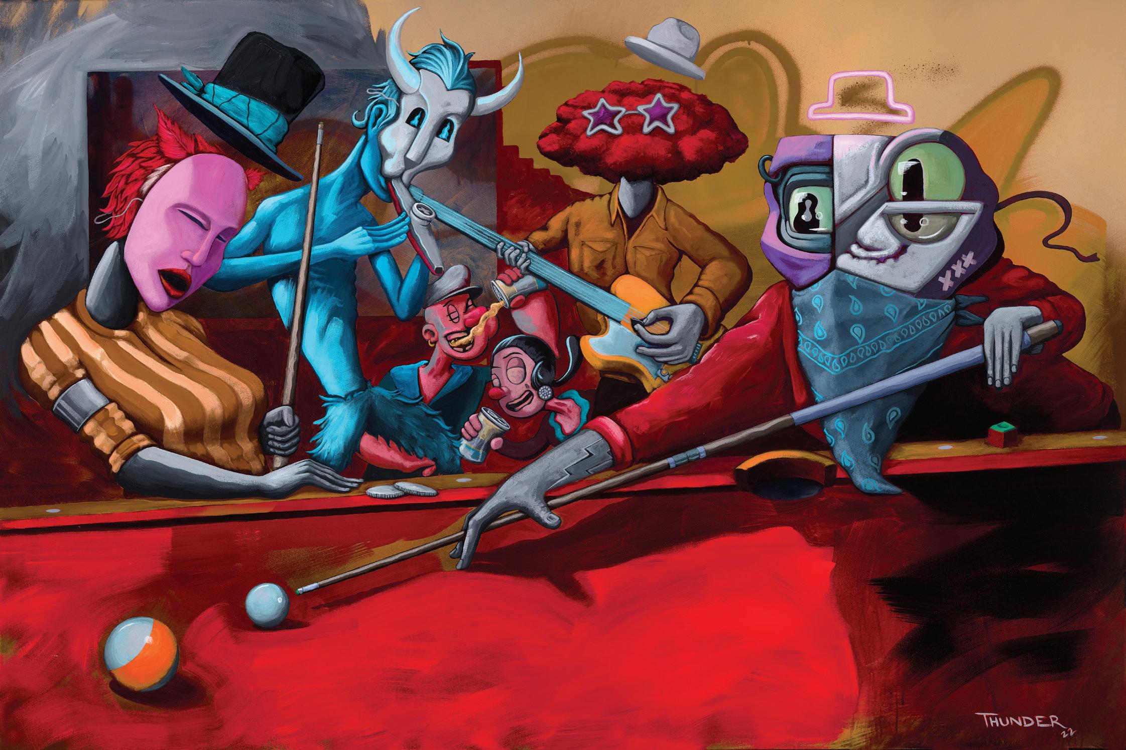 Jonathan Thunder infuses his personal lens with real-time world experiences using a wide range of mediums. He is known for his surreal paintings, digitally animated films, and installations in which he addresses the subject matter of personal experience and social commentary. Thunder is an enrolled member of the Red Lake Band of Ojibwe and makes his home and studio in Duluth, MN.