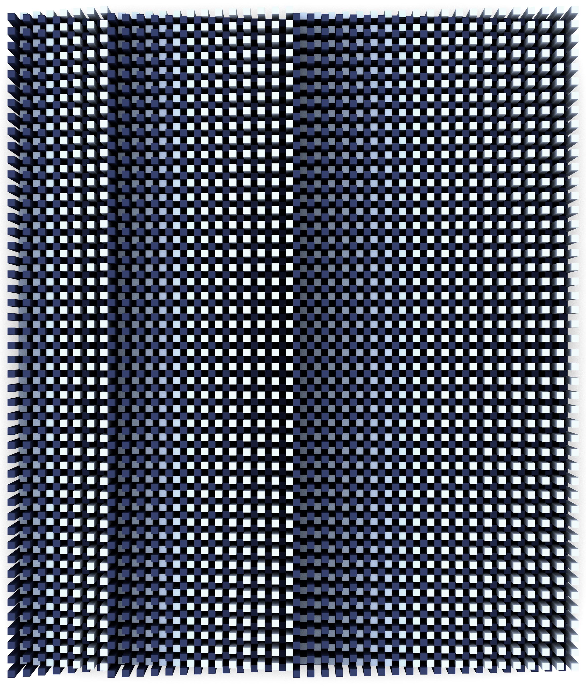 The Soft Focus series of paintings is a study of component variation and my introduction to the concept of ambient occlusion. The concept is a study of light reflection and computational shadow bounce. The works rely on a calculated internal space of shadow or darkness to produce variation in surface texture.