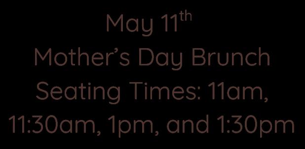 Seating times: 11am, 11:30am, 1pm & 1:30pm