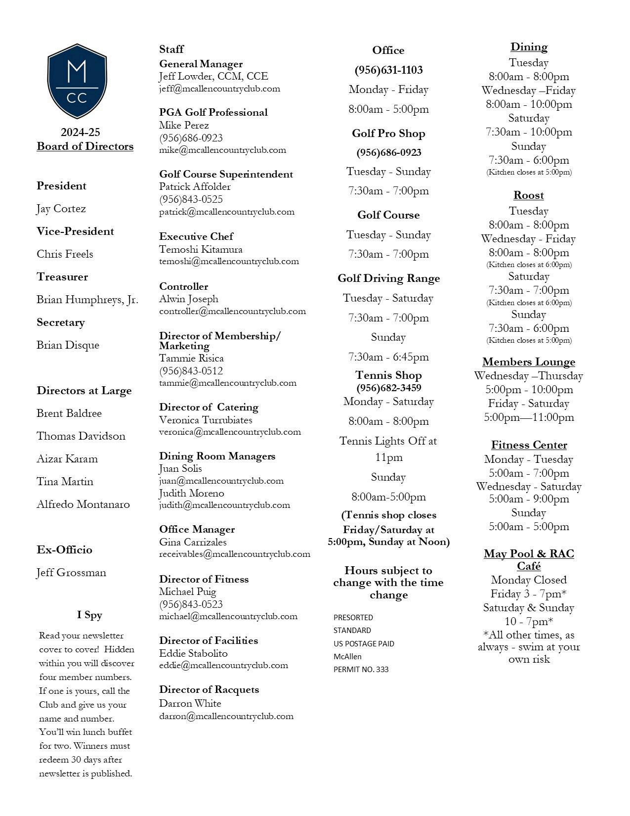 In May, we look forward to Mother’s Day, Graduations, Pool and RAC Cafe opening weekends, and the Memorial Day Pool Party. For all the latest updates, check your Clubster app, flyers, and this newsletter.