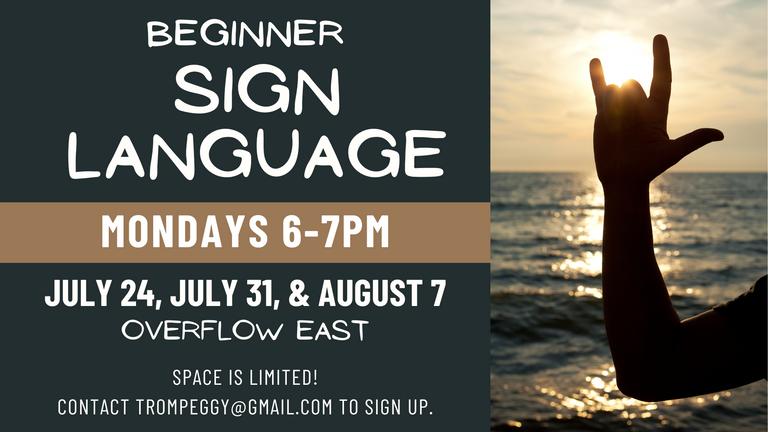 July 24 Beginner Sign Language Contact: trompeggy@gmail com