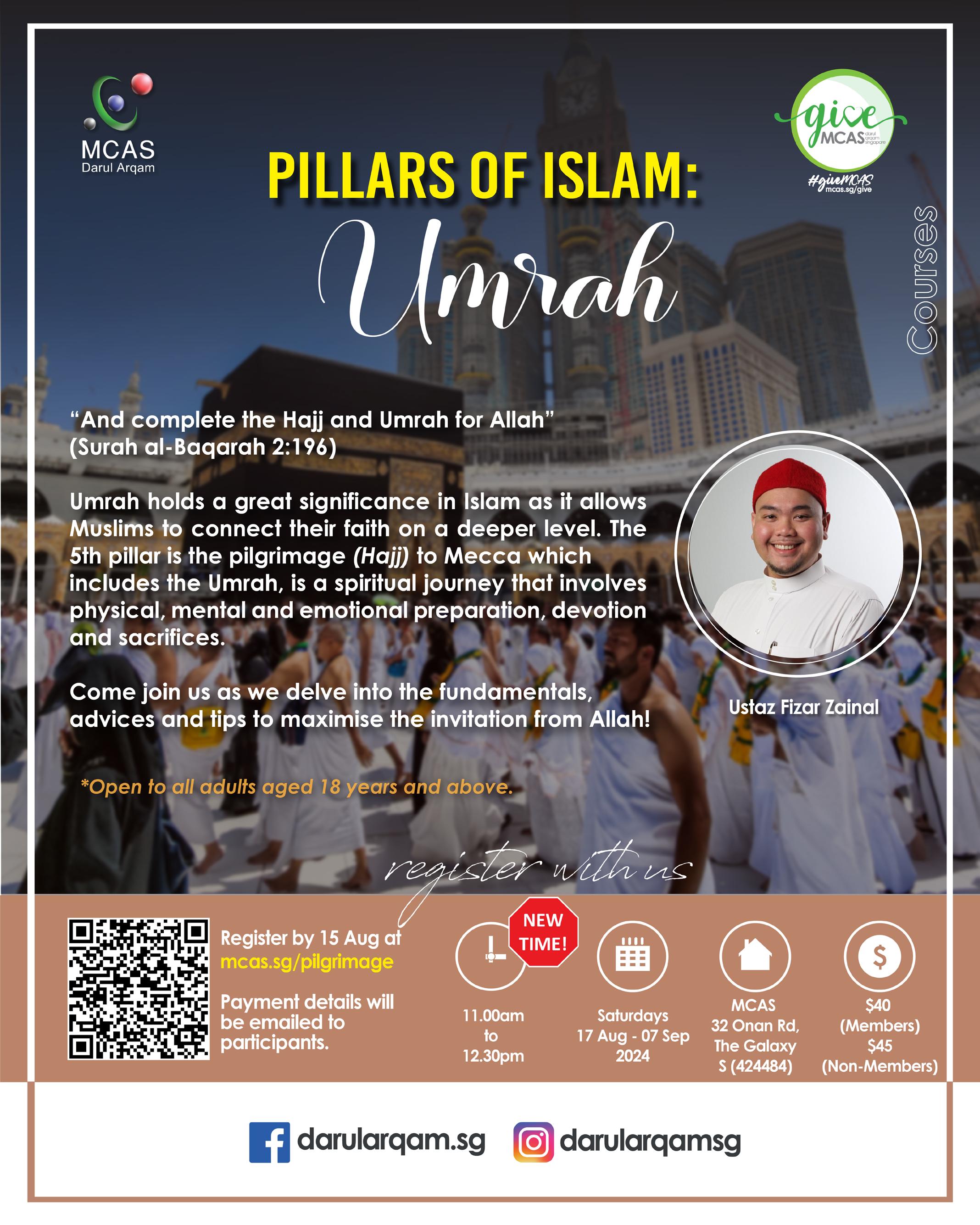 Join us for our Knowing Islam Session (KIS) to understand the religion of Islam. It offers an introduction to Islam and serves as the basis to other courses at our association. KIS is a one-time only session that is conducted every Saturday and Sunday, from 10am to 12.30pm (except Public Holidays).