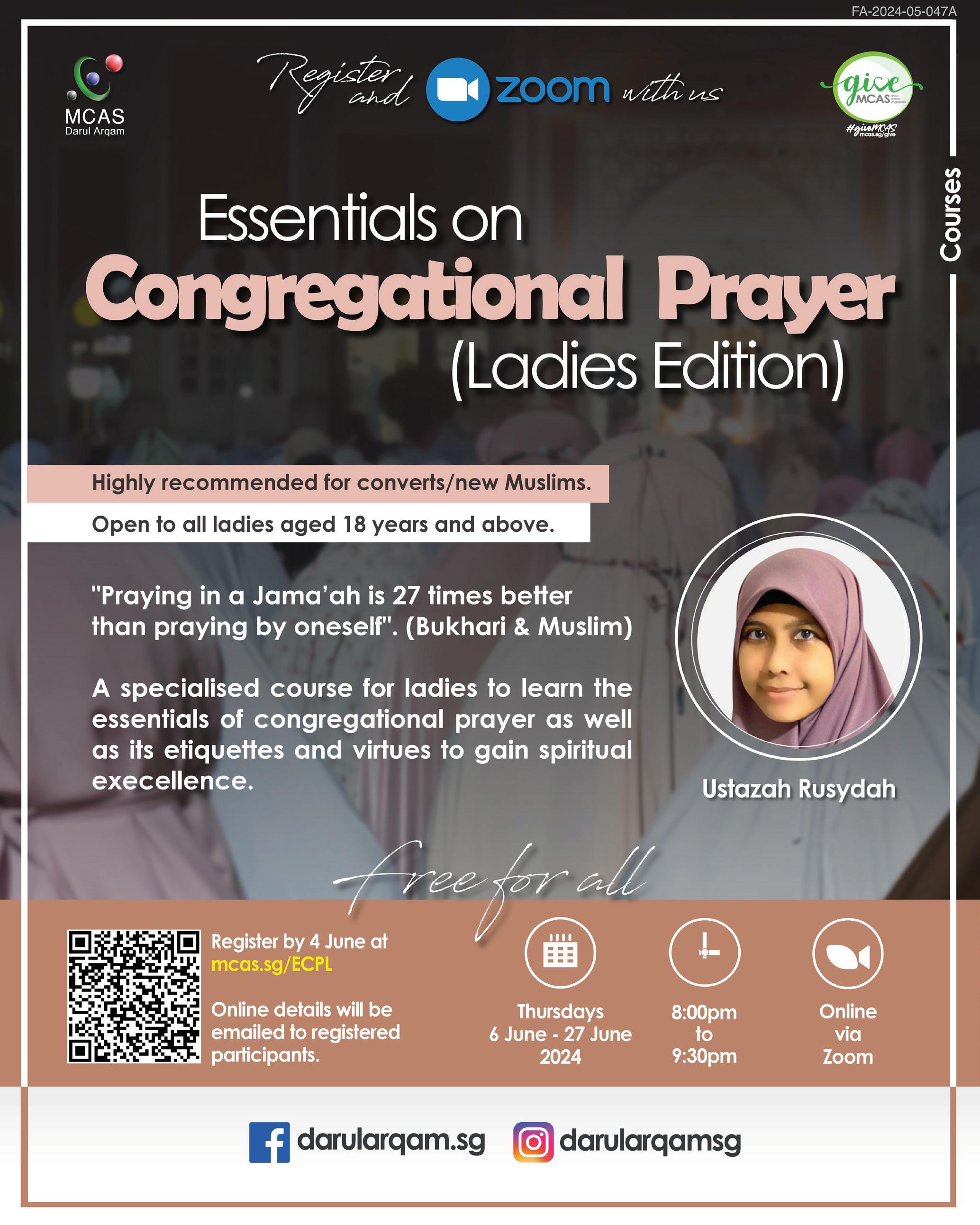 4. 26 Jun - 31 Jul | 8pm - 9.30pm Let’s Pray (Friday Prayer Edition) (Male Only) (Physical) 28 Jun 2024 | 11.30am – 2pm