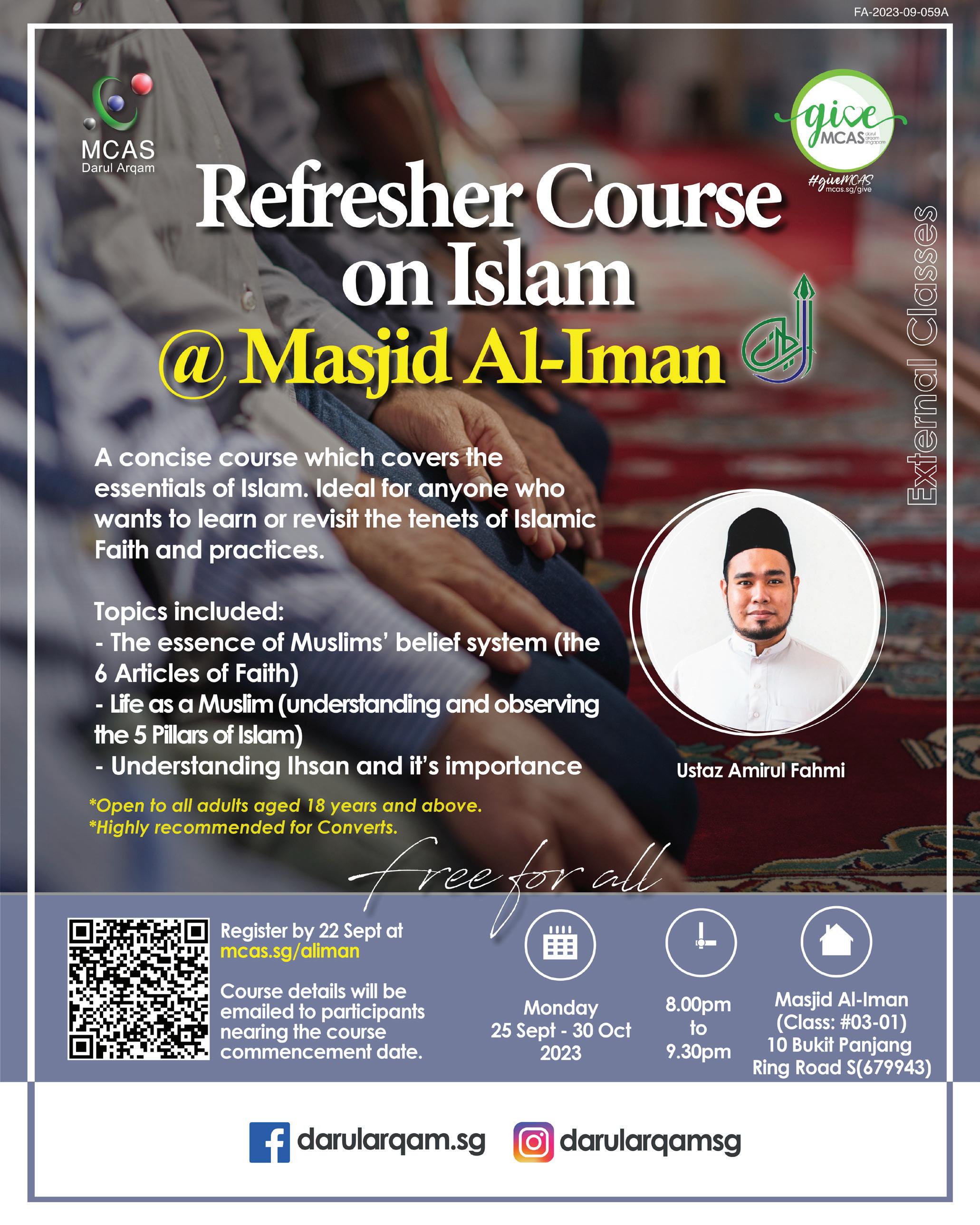 Join us for our Knowing Islam Session (KIS) to understand the religion of Islam. It offers an introduction to Islam and serves as the basis to other courses at our association.
