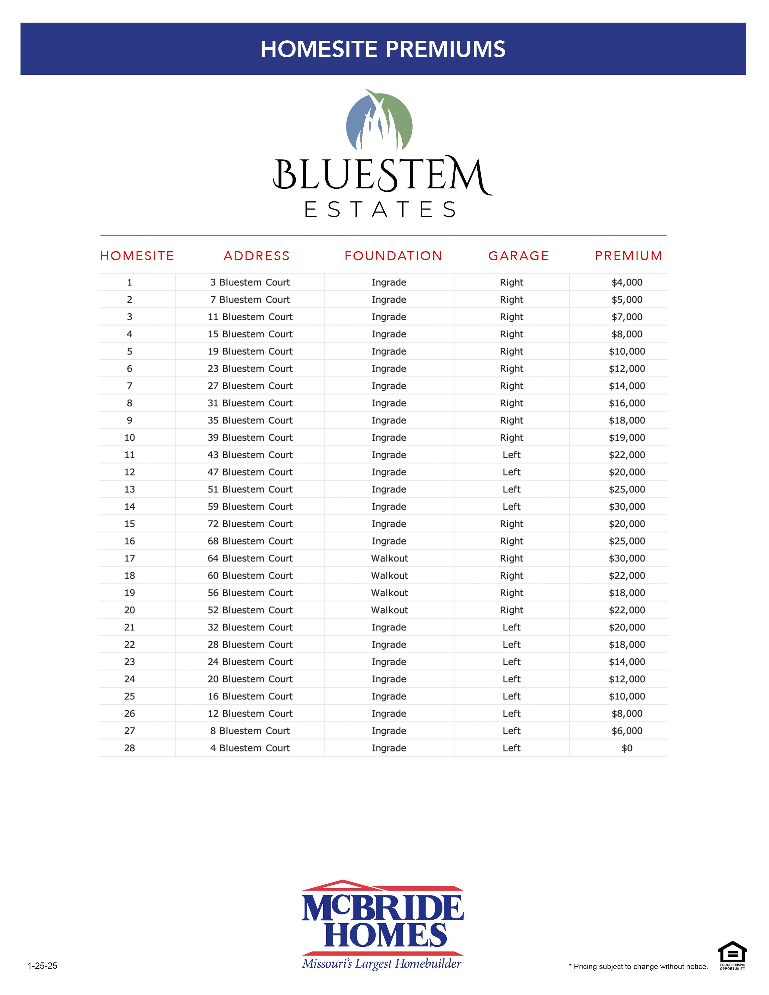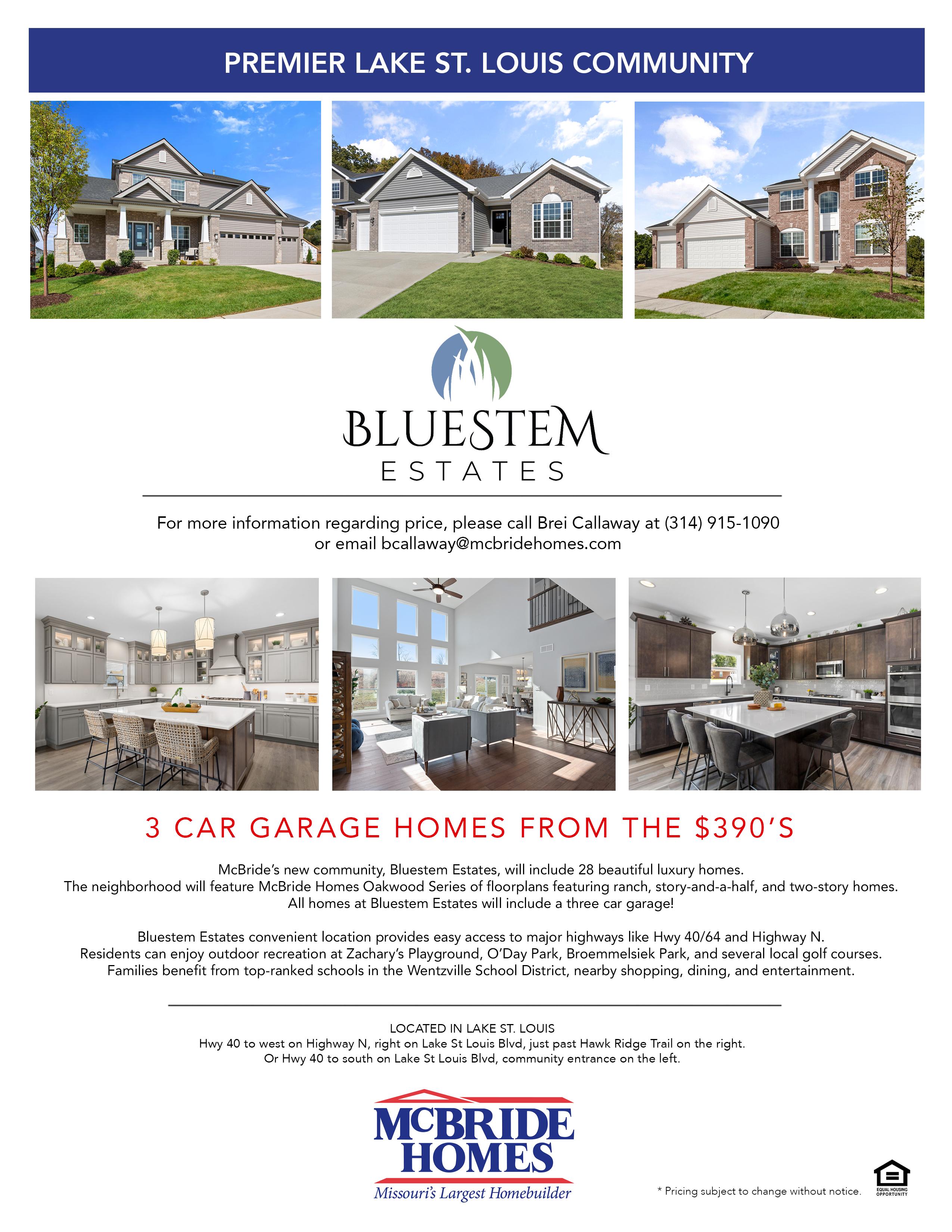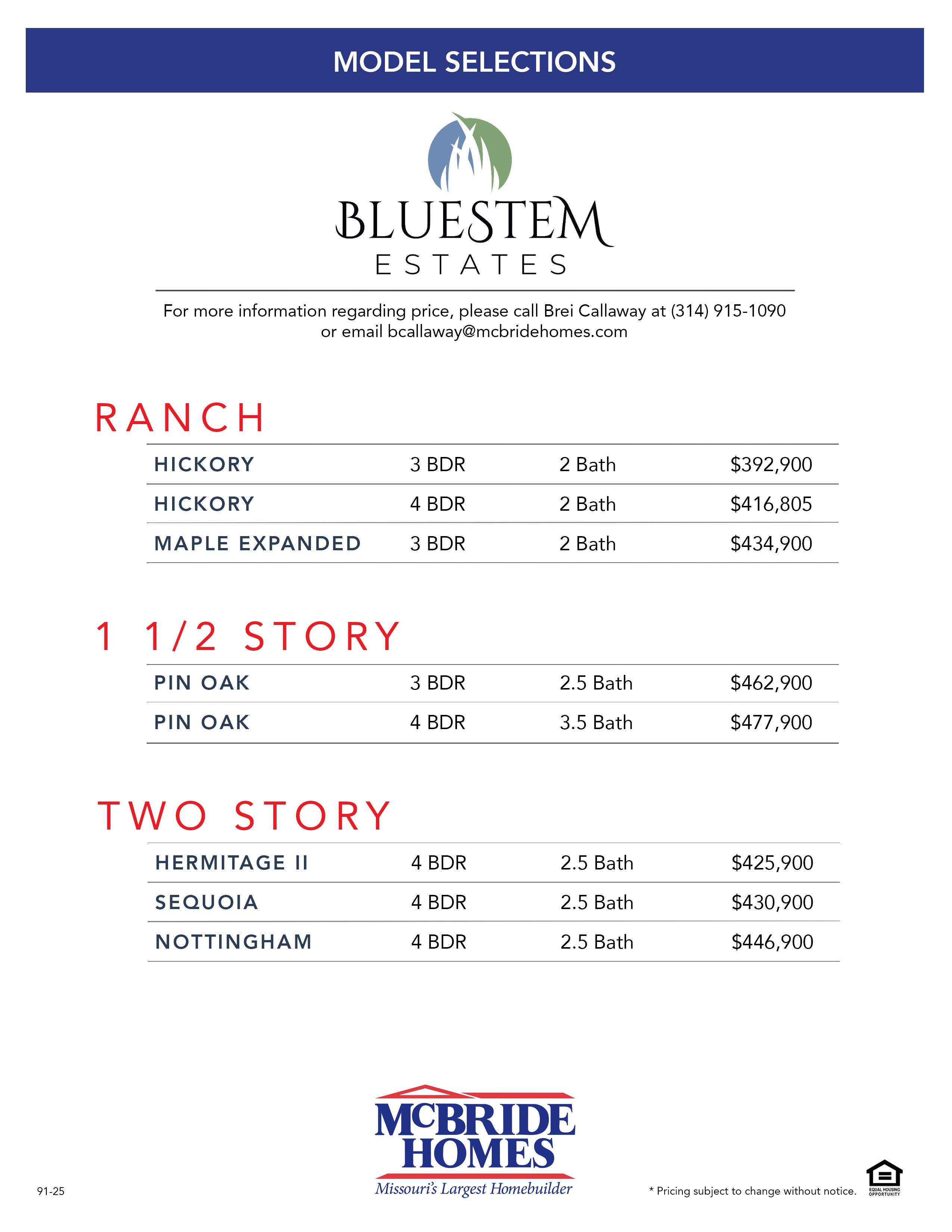 For more information regarding price, please contact Brei Callaway Call (314) 949-3150 or email bcallaway@mcbridehomes.com