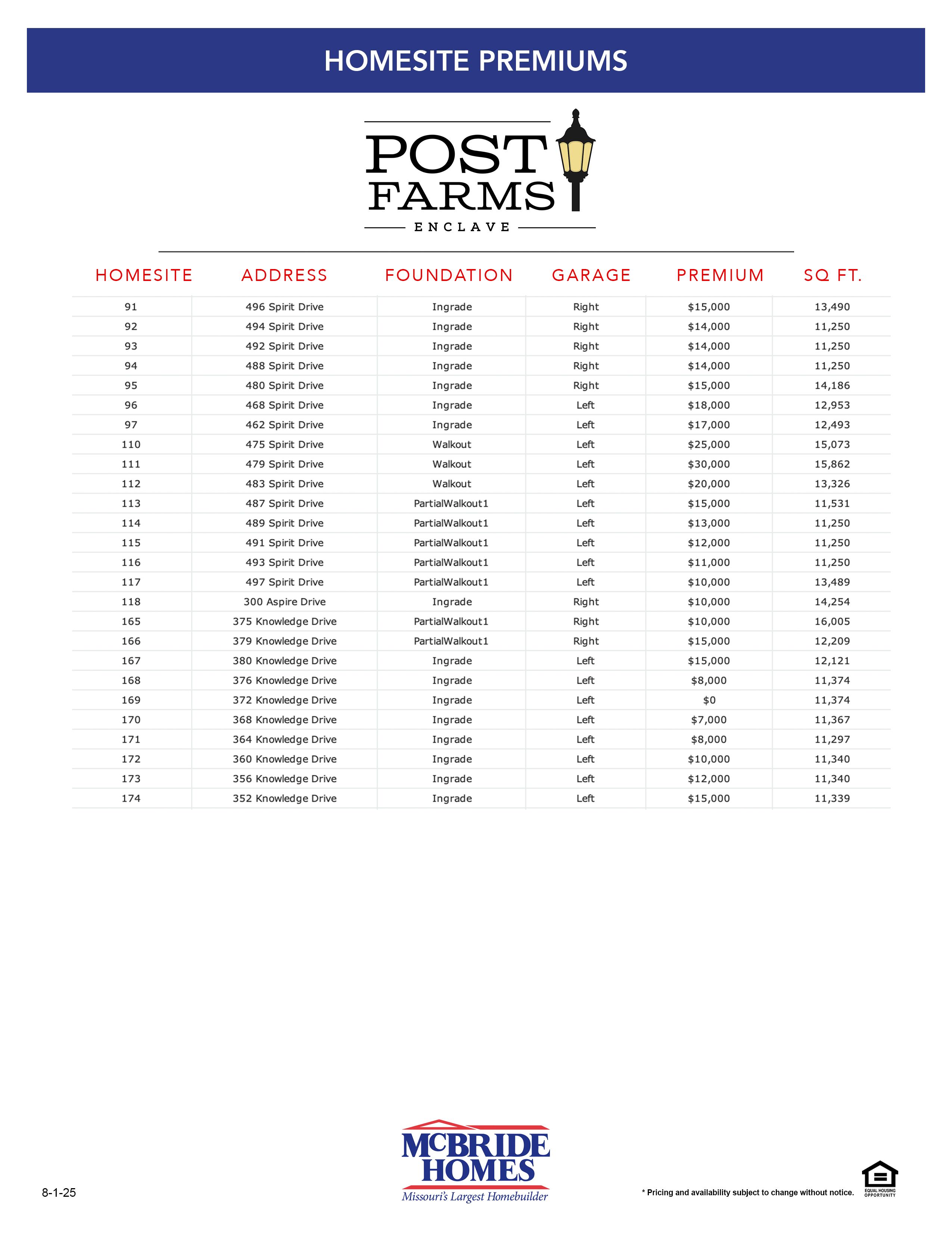 Post Farms Enclave highlights the Oakwood Series, which includes ranch, 1.5-story, and two-story homes with elegant and open layouts. Each home includes a three-car garage, providing plenty of room for vehicles and storage. Select walkout homesites are available, offering scenic views and added privacy. Whether you prefer a cozy ranch-style home or a spacious two-story floor plan,