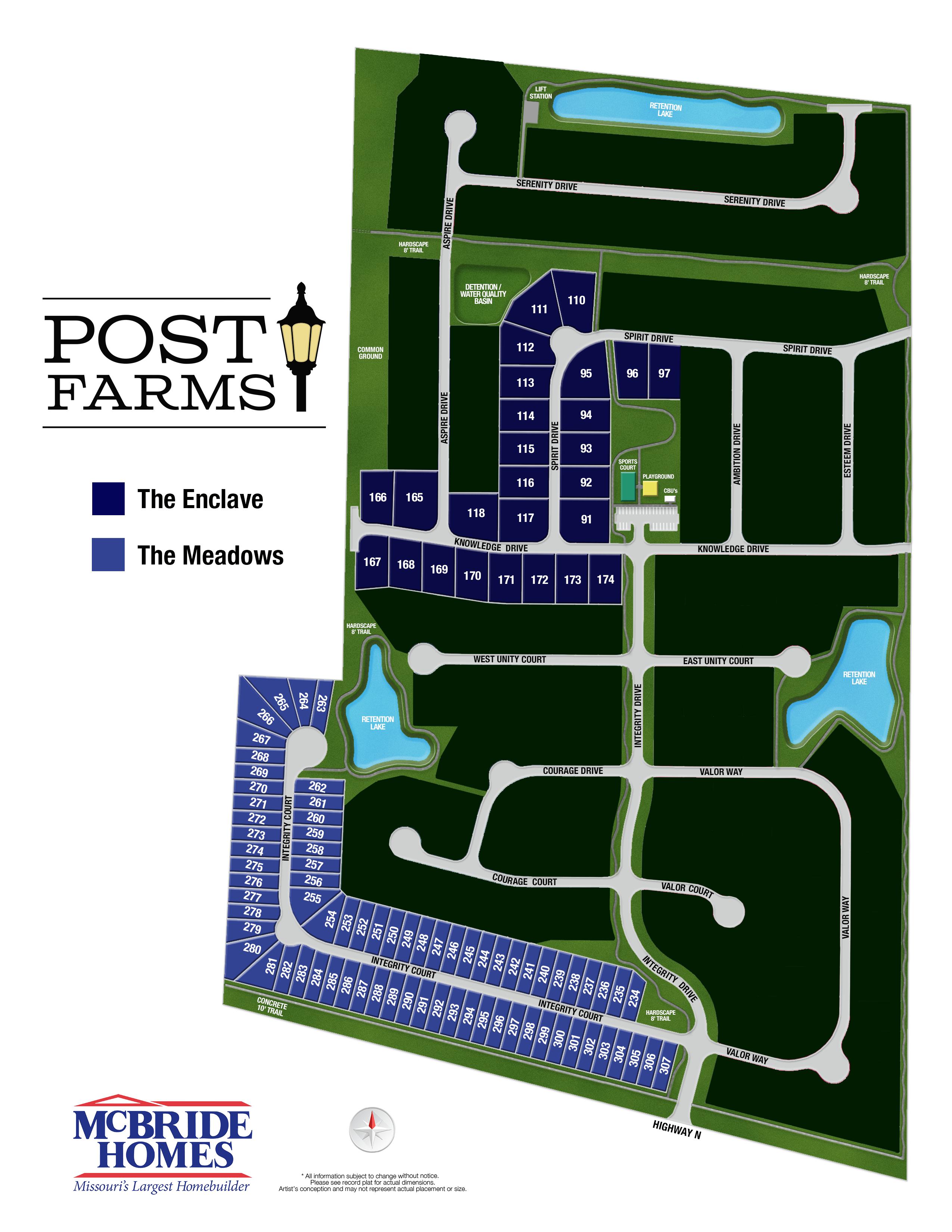 Discover Villages at Post Farms, an exciting new home community in O’Fallon, Missouri. This thoughtfully planned neighborhood features 118 beautiful new construction homesites nestled among scenic green spaces.