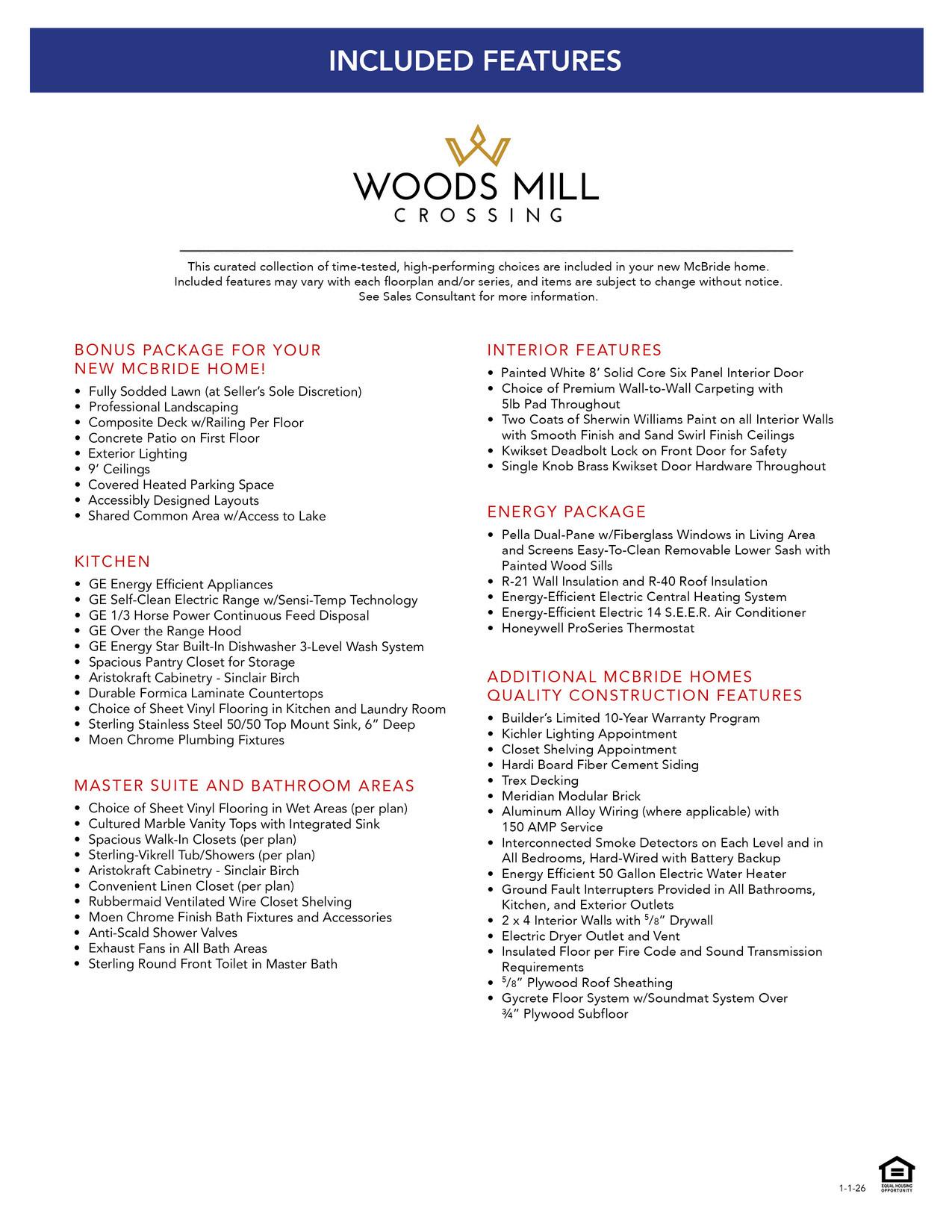 Woods Mill Crossing debuts McBride’s new luxury condo floor plan, The Willow These elegant condos offer two- or three-bedrooms, each with two and a half baths and a spacious laundry area. The modern kitchen features a large island which flows into an open concept living area - an ideal space for both relaxing and entertaining. Every unit includes private outdoor space and each building offers a secure lobby, convenient elevators, and underground parking