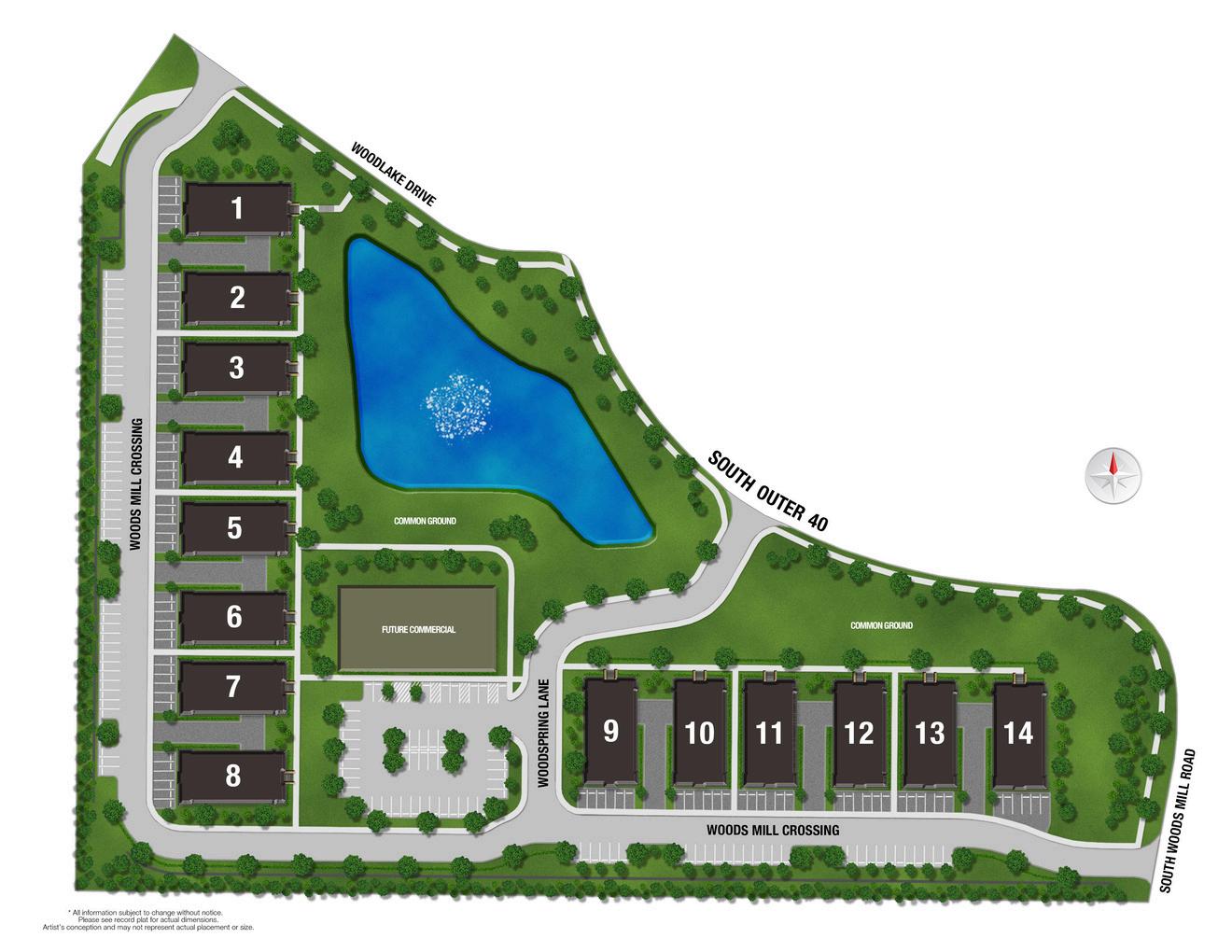 The community is thoughtfully planned with abundant green space and a vibrant mixed-use plaza, featuring tenants to complement an elevated lifestyle. Whether you're sipping coffee on your balcony, enjoying brunch at the patio restaurant, or taking a peaceful walk around the lake, Woods Mill Crossing offers a luxury living experience unlike anything else in the area.