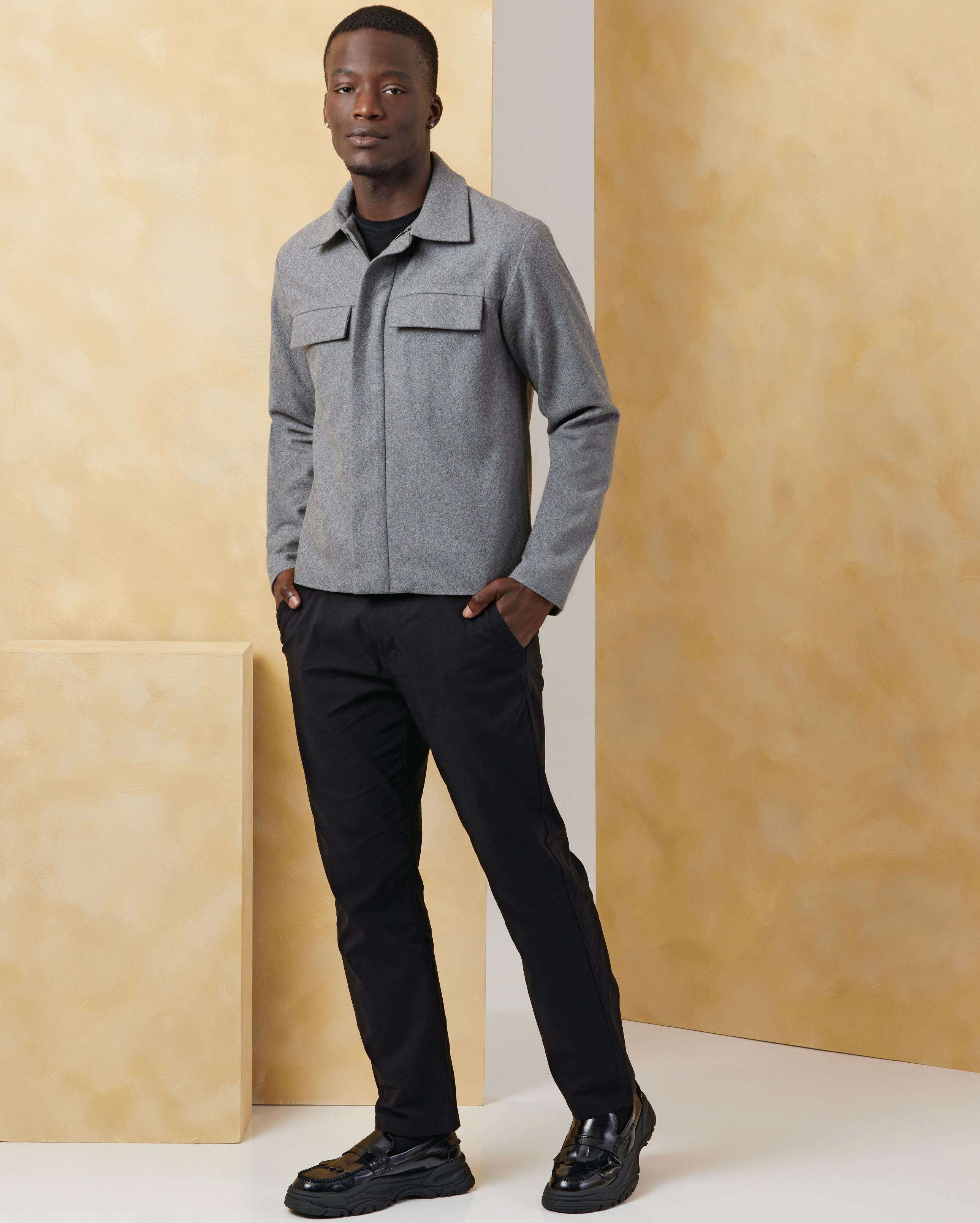 V2075 Grey coat. Earrings: Betty Carre. Handbag: Sondra Roberts.