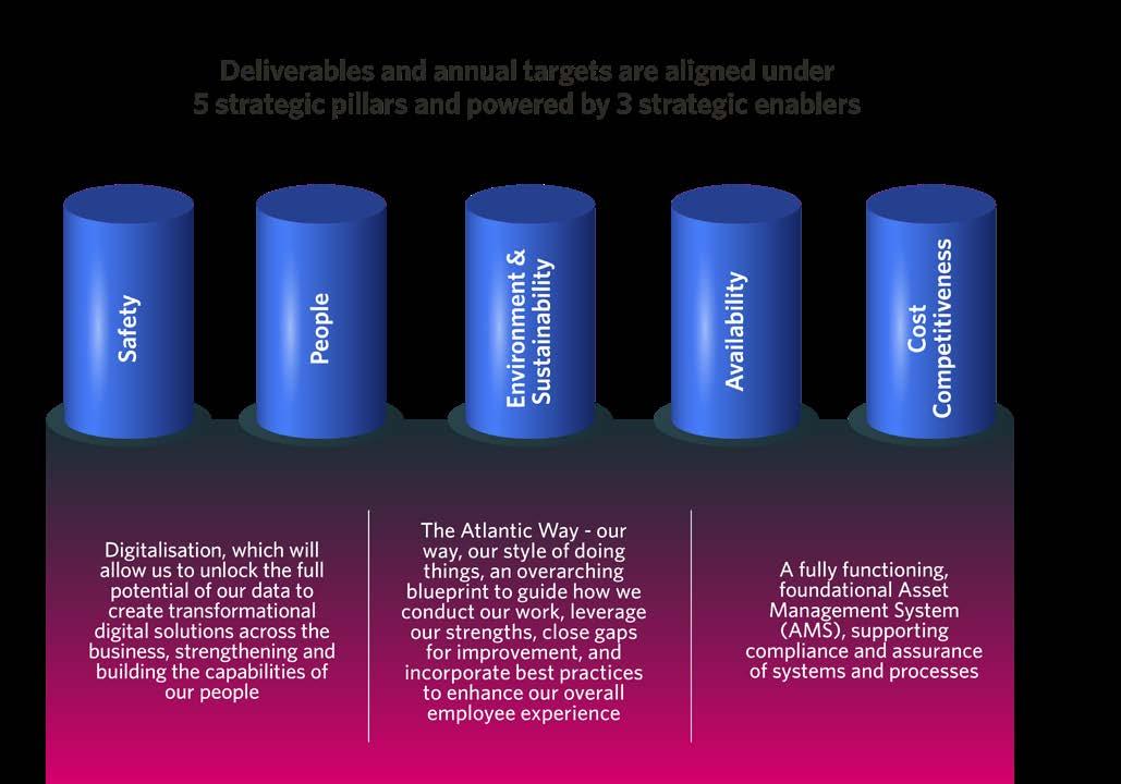 three Strategic Enablers. We commissioned these teams to work on identifying and detailing the initiatives, activity sets and resources that will enable Atlantic to deliver the Corporate Strategy over the next 5 years. The teams did an excellent job, and their work has resulted in our Mission Critical Tactics (MCTs) — key programmes and plans driving the success of our Pillars and Enablers. For 2023 and beyond, the company will be engaged with execution of these MCTs and landing the milestones that will help cement our world-class status.