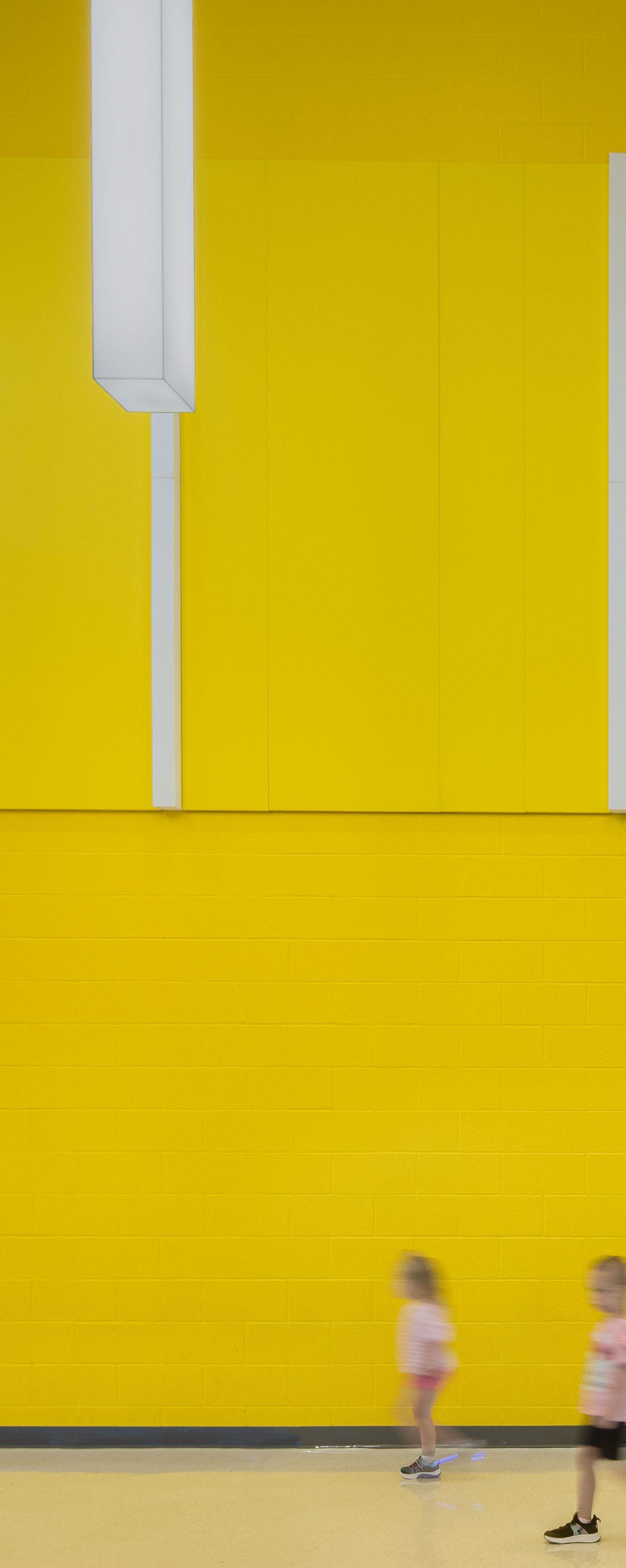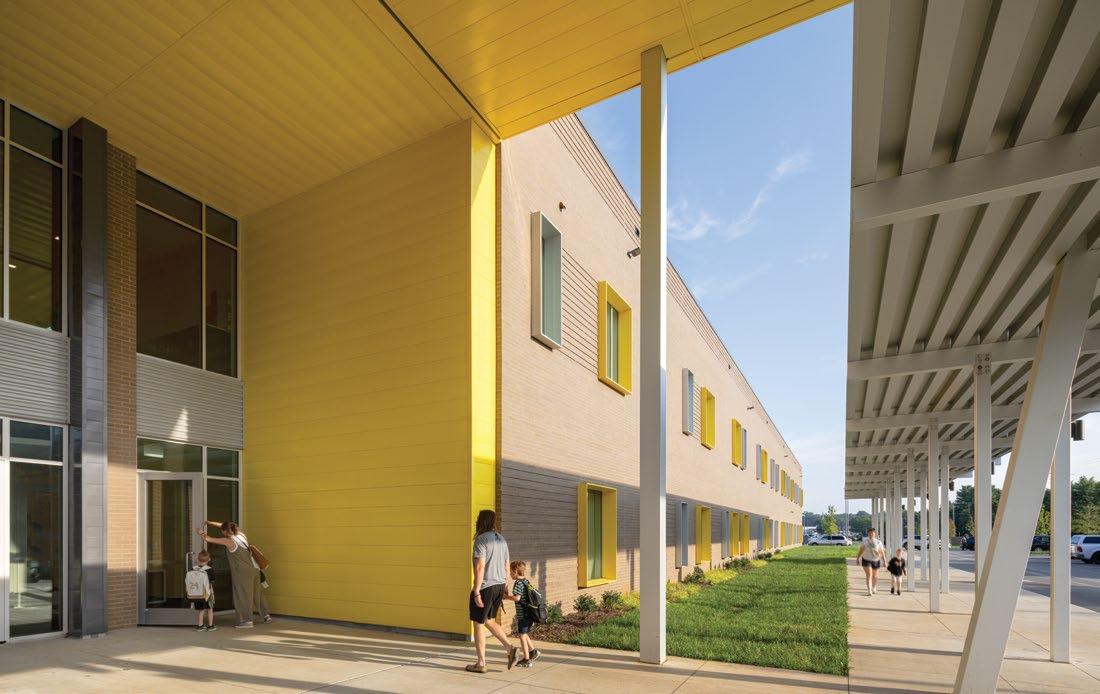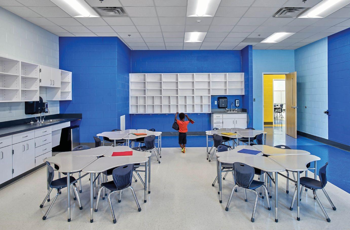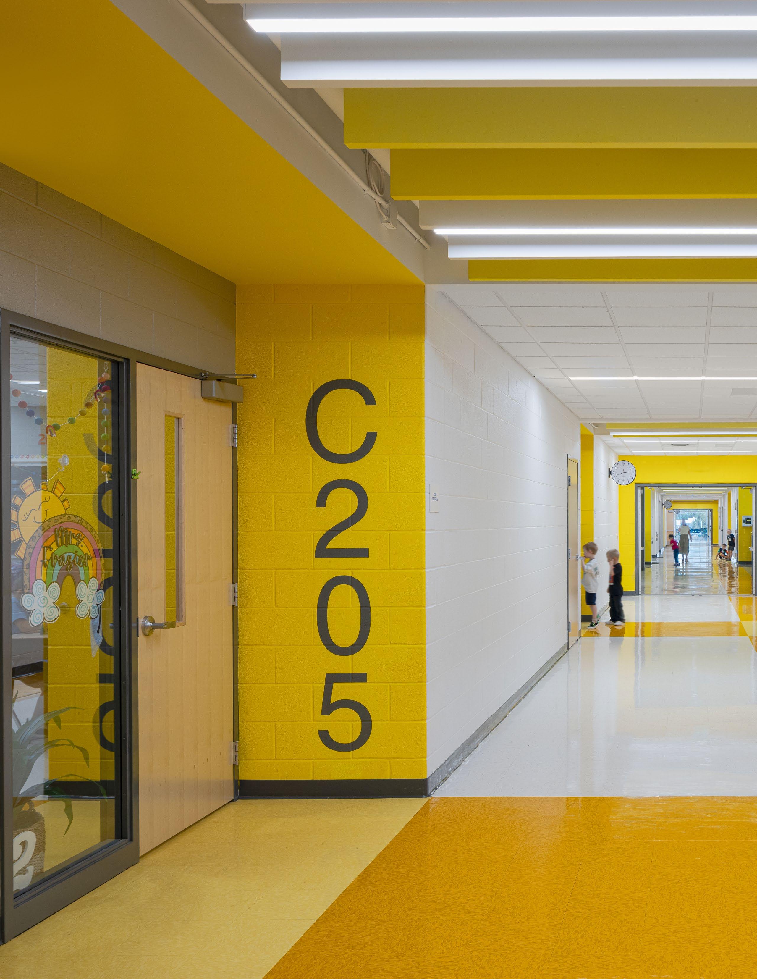 The program consists of classrooms for Kindergarten through 5th grade connected by bright, flexible breakout spaces in the corridor, as well as a media center, gymnasium, dining area, and art and music classrooms.