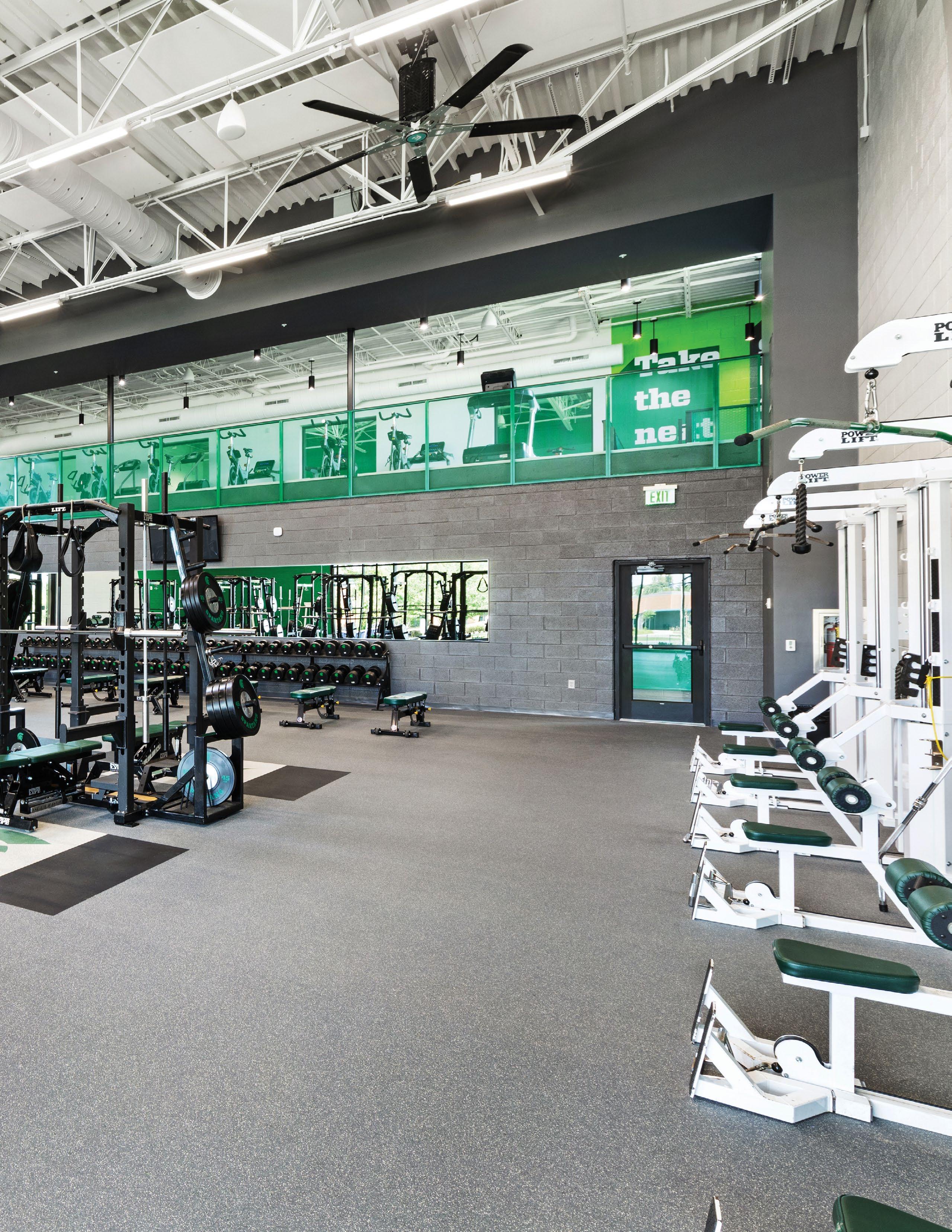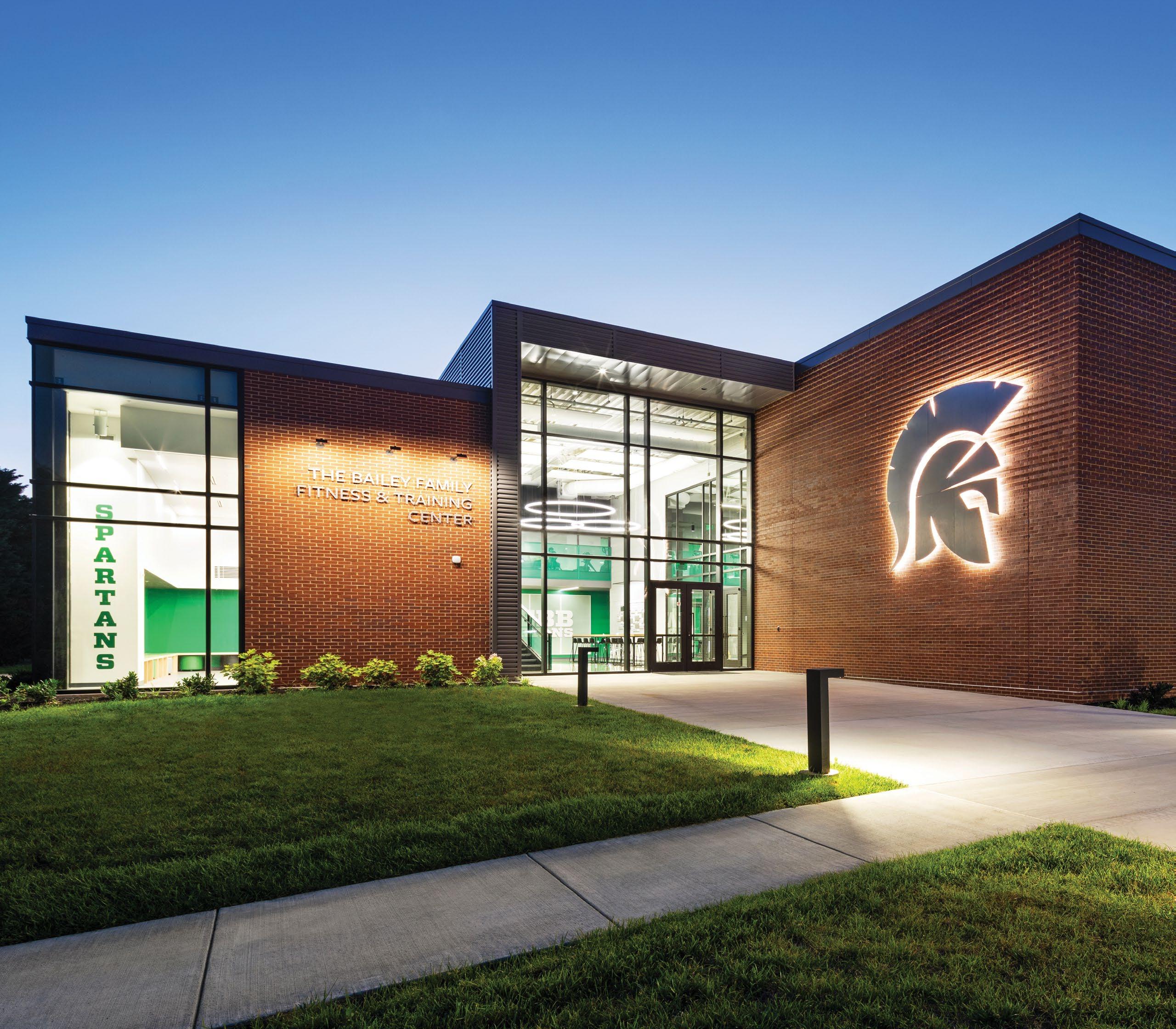 The Bailey Family Fitness & Training Center is a state-of-the-art facility dedicated to promoting fitness, wellness, athletic training, and nutritional education, offering strength and conditioning opportunities for both students and faculty. The design emphasizes spaces for physical fitness while fostering connections among students through thoughtfully integrated indoor and outdoor areas for engagement.
