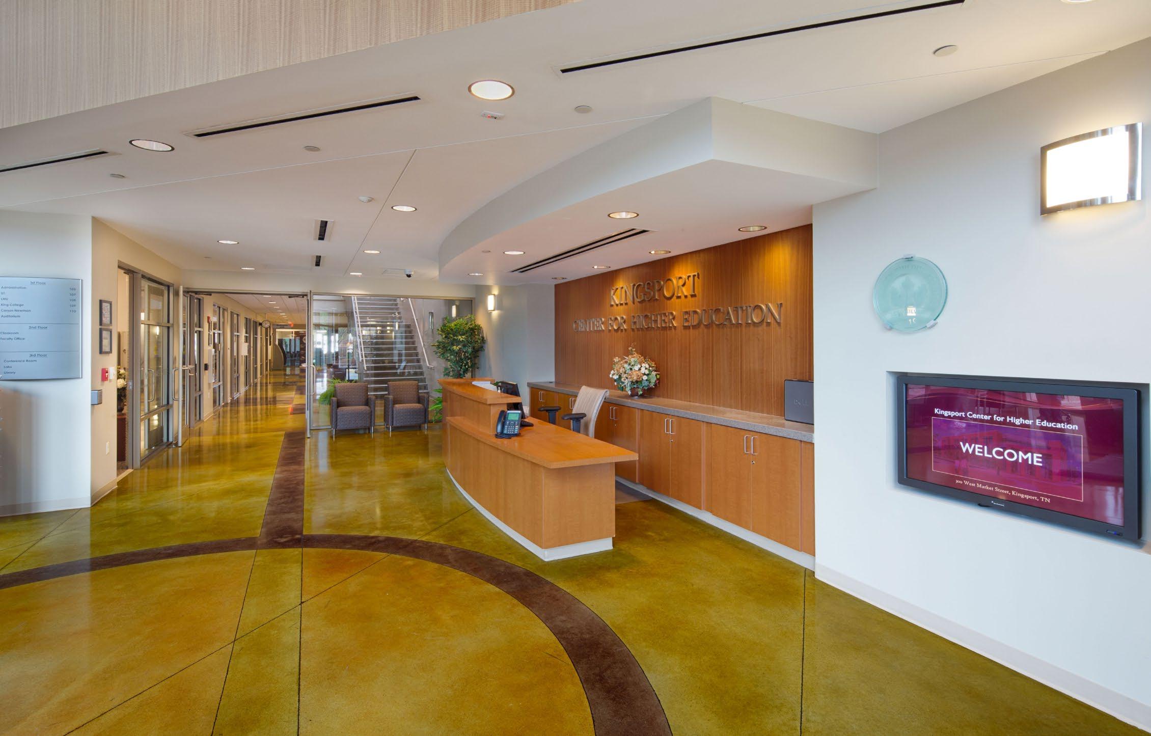 The Kingsport Center for Higher Education is a new $10,400,000 facility, of approximately 54,000 gross square feet, spread over three floors. It was programmed for an initial student capacity of 1,200 students, with the ability to expand to a maximum of 2,000 students.