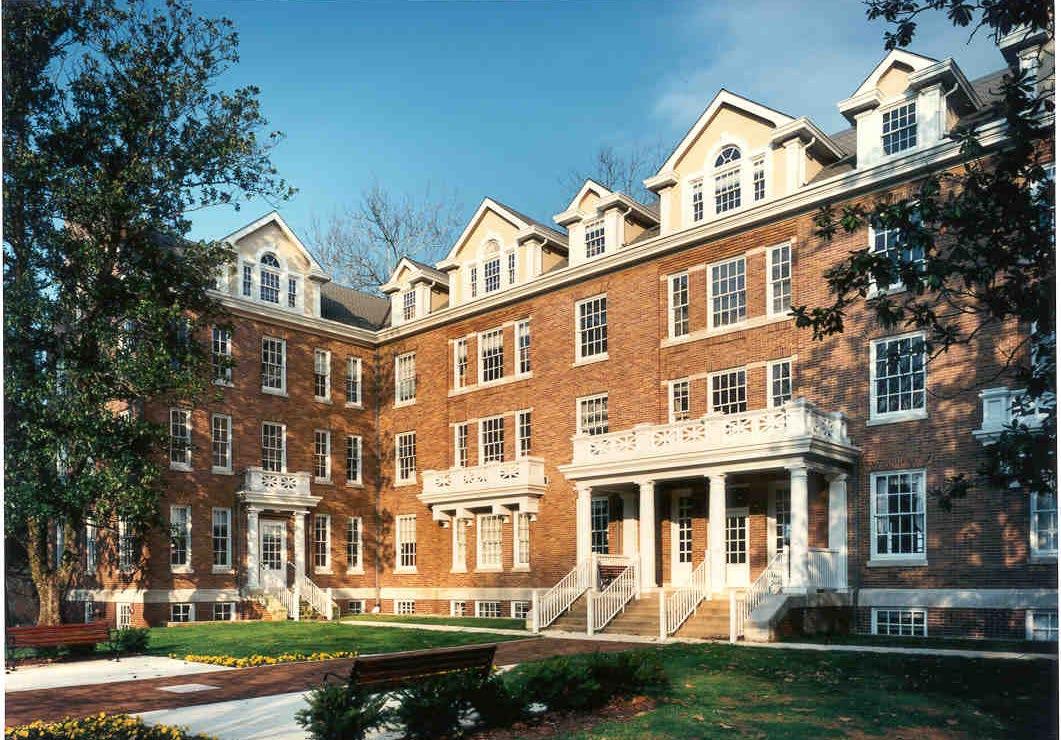 Wiley Residence Hall, built in 1928, is a focal point of this picturesque campus. McCarty Holsaple McCarty completed the exterior renovation of this brick building in 1992.