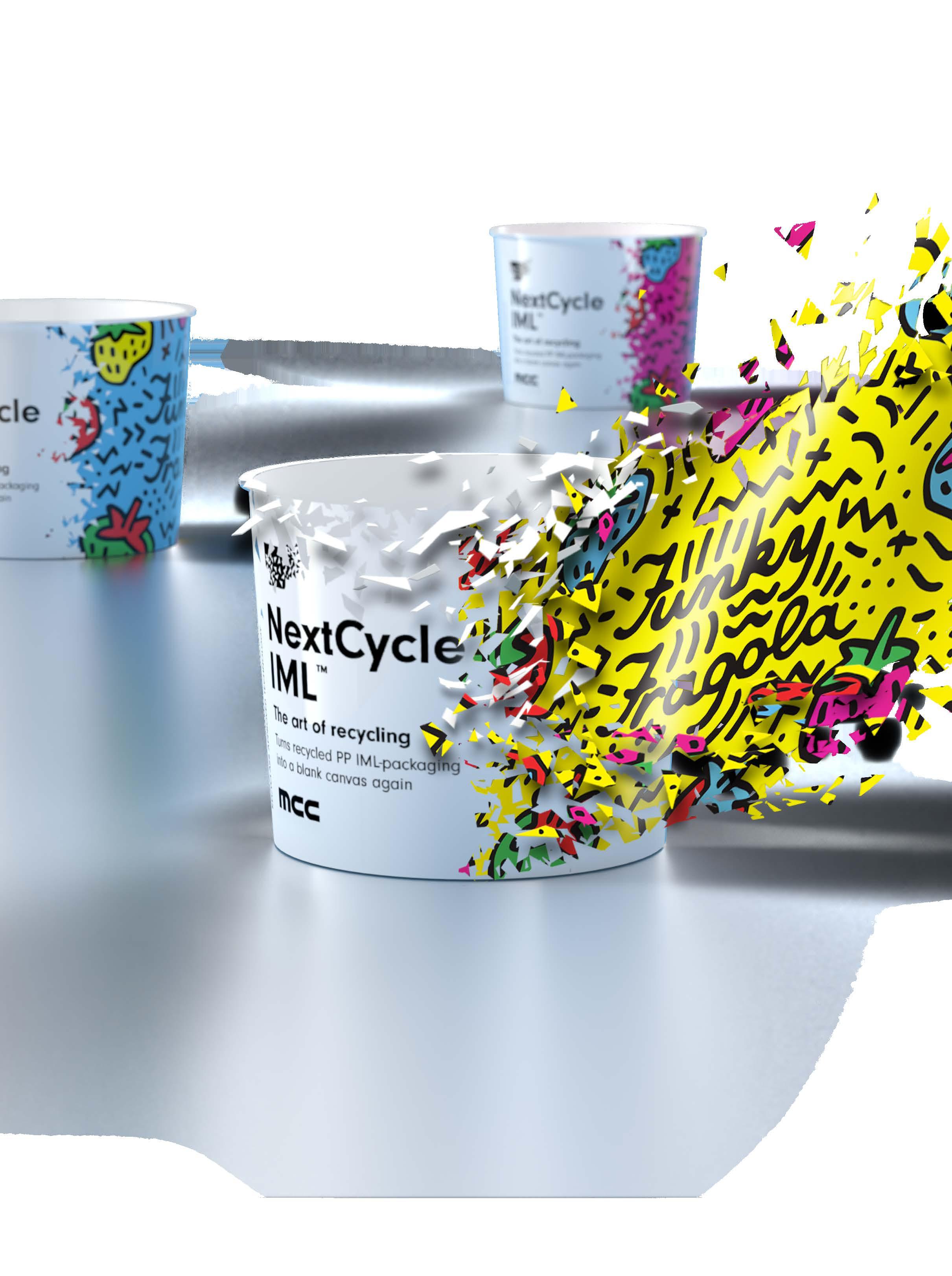MCC Global IML creó NextCycle IML™ para dar a los propietarios de marcas más libertad en términos de decoración y diseño, y al mismo tiempo permitir que el envase y la etiqueta se reciclen en el flujo de residuos de PP existente. Se trata de un nuevo concepto transformador que facilitará la producción de rPP de alta pureza, y potencialmente apto para el uso alimentario, sin necesidad de cambiar ningún aspecto del proceso actual de reciclaje mecánico.