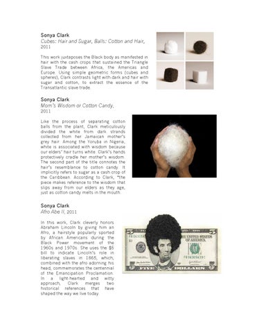 Sonya Clark Cubes: Hair and Sugar, Balls: Cotton and Hair, American women self-made millionaires, a Black woman who was born a few years after the