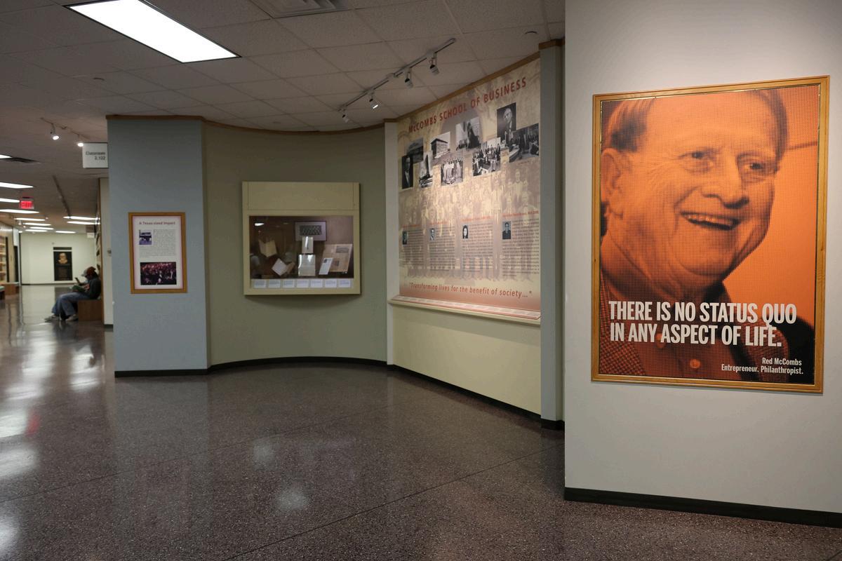 Next to the Dean’s Office is the History Exhibit The school developed the exhibit with the help of the Director of Exhibits for the Bob Bullock Museum. It depicts the evolution of the school and its impact in the state of Texas over its 80-year history