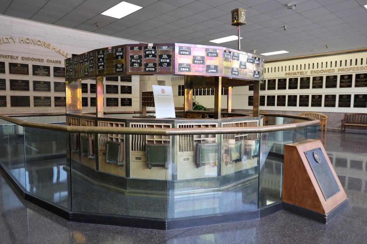 s stock ticker was one of 17 original trading stations alled at the New York Stock Exchange in 1929 In 1980, Exchange replaced all the manual trading posts with histicated electronic ones, and UT acquired Post No 5 nks to a $37,000 fund-raising drive by alumni. Today, ticker serves as a reminder of McCombs strong ties to Wall Street