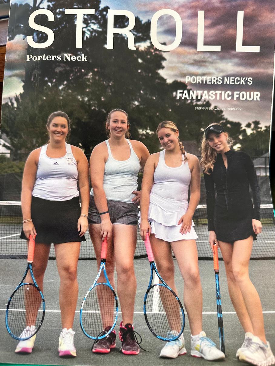 Porters Neck Juniors, Grace Breeden, Katie 'KG' Sechrist, Lilia Wall, and Sophia Catino grew up playing tennis at PNCC. Last month, they were the cover story for the Porters Neck community magazine, Stroll. As they prepare to play college tennis, they looked back on fond tennis memories and shared appreciation for their favorite tennis coach, PNCC's Rafa Toro! Good luck, ladies. The world is your oyster!