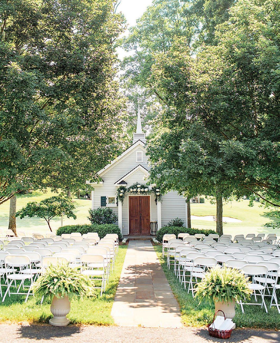 Since the church’s restoration, many have tied the knot at this beautiful venue. While the interior can be used for smaller ceremonies, couples tend to utilize the chapel as an altar background with guests seated outside on either side of the walkway. Kasey Outen, stepdaughter of McConnell Golf CEO John