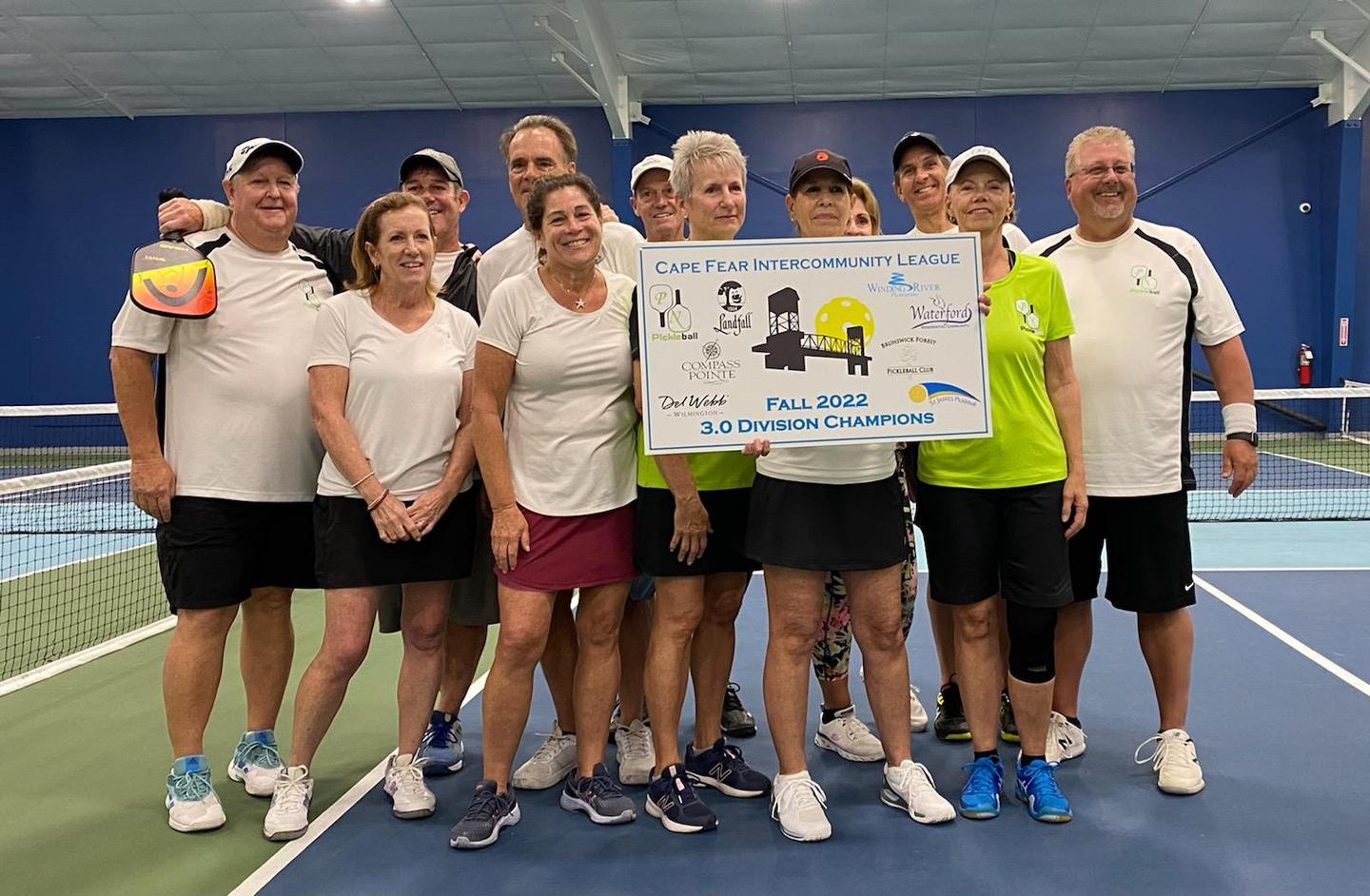 3.0 Team, pictured second, beat Waterford 14 10 in a competitive match, ending with a final win! The team consisted of: Elizabeth Newber (Team Captain), Virginia Teachey, Susan Berry, Eileen Spata, Kelly Hepner, Sharon Hyland Brown, Judy Wax, Fran Scharf, RJ Jeanmenne, Claude Arnold, Charlie Fisher, JP O’Connor, Bob Pelosi, Ted Ricks, Gary Teachey, Hank Rapaport.