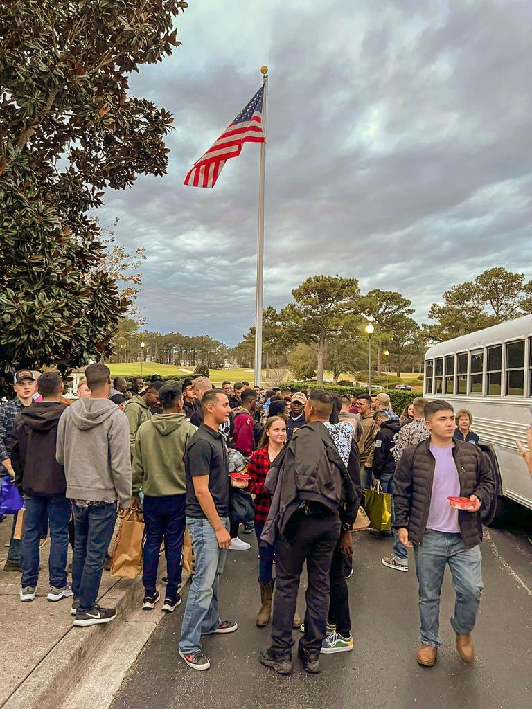 We were truly honored to have 200 Marines and Sailors from Camp Lejeune join us for Thanksgiving dinner. 101 Service Members were hosted in the homes of Porters Neck residents. The remaining 99 were honored guests at Porters Neck Country Club. This is becoming a Porters Neck tradition and I want to specially thank all the members that have donated money to sponsor a service member or hosted Service Members at their home. We have included photos from the event on the following page. Videos from the news coverage can be found on the Porters Neck Country Club YouTube