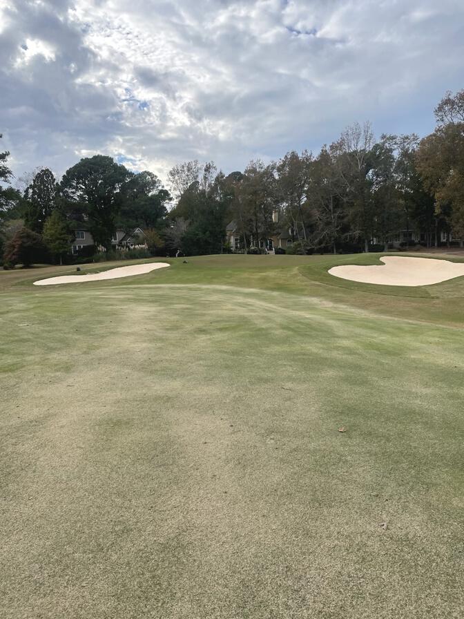 HOLE #8: New fairway bunker has been outlined and trees removed on right side of green