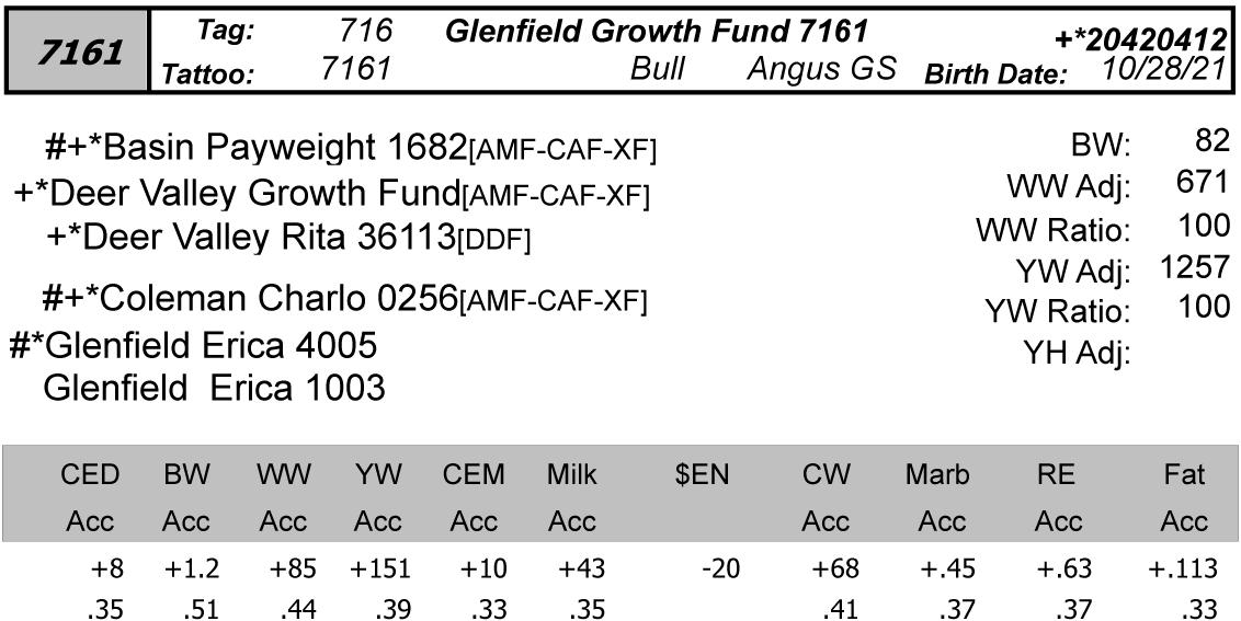 GLENFIELD B G 5016 956 25% SIMMENTAL Birth Date: 12/05/21