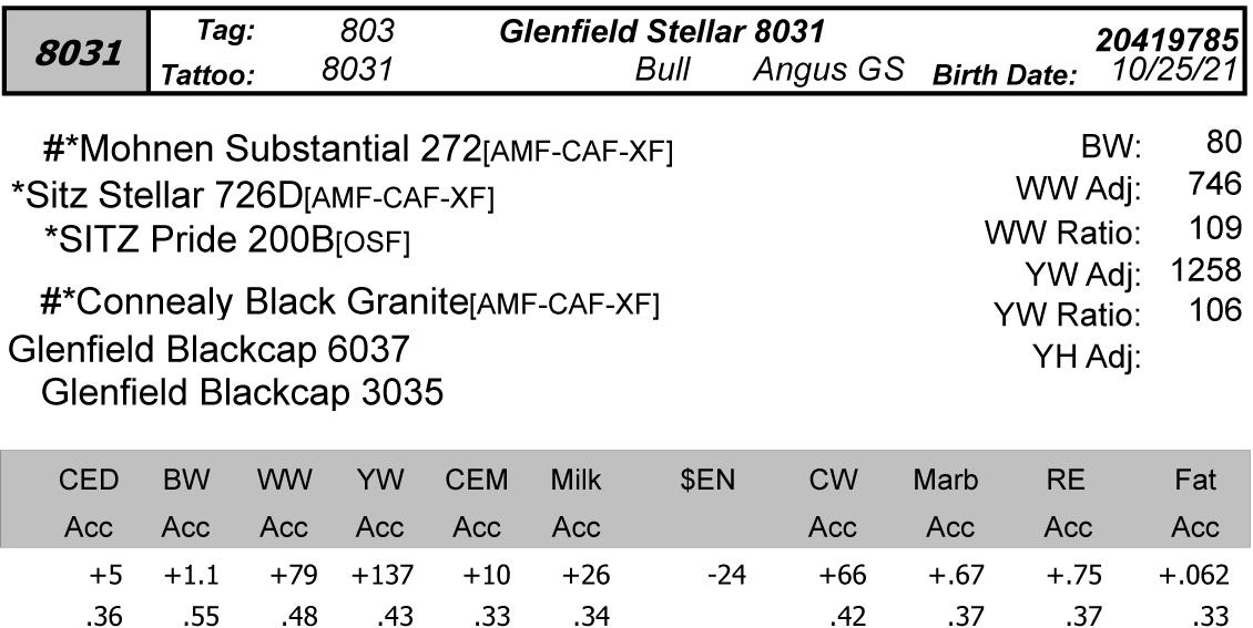 48 GLENFIELD STELLAR 8031 20419785 ANGUS GS Birth Date: 10/25/21