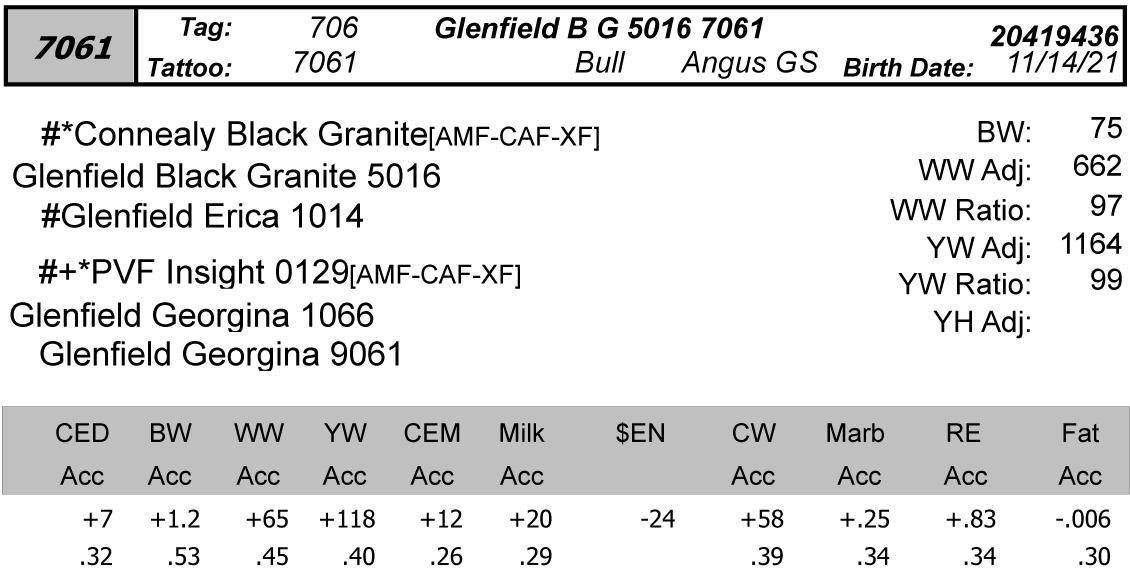 59 GLENFIELD B G 5016 7061 20419436 Birth Date: 11/14/21