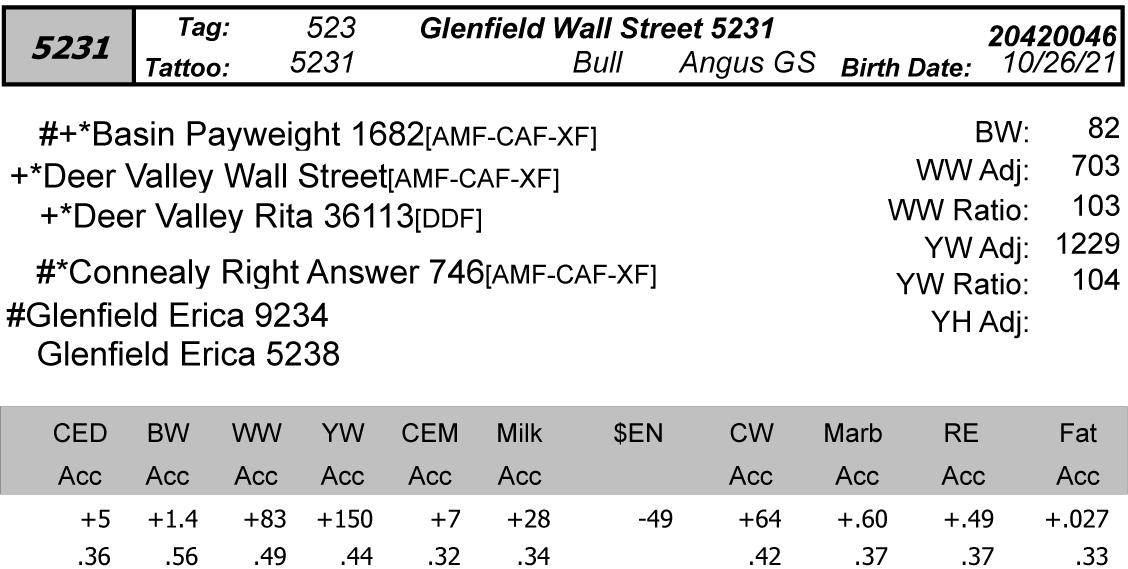49 GLENFIELD WALL STREET 5231 20420046 ANGUS GS Birth Date: 10/26/21