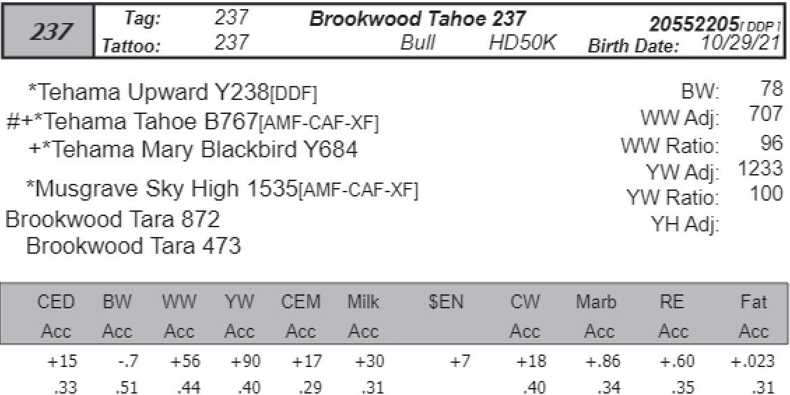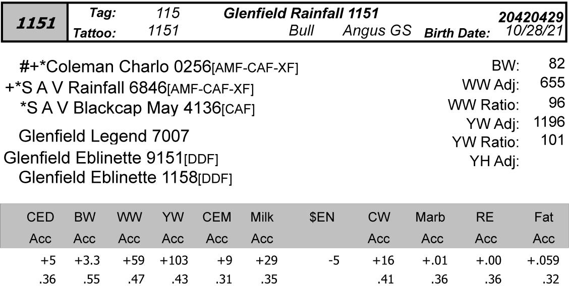 Certificates of registry on all purebred bulls will be furnished and transferred by the seller to the buyer at the seller’s expense. EPDs are accurate at time of catalog printing but are subject to change as additional data becomes available.