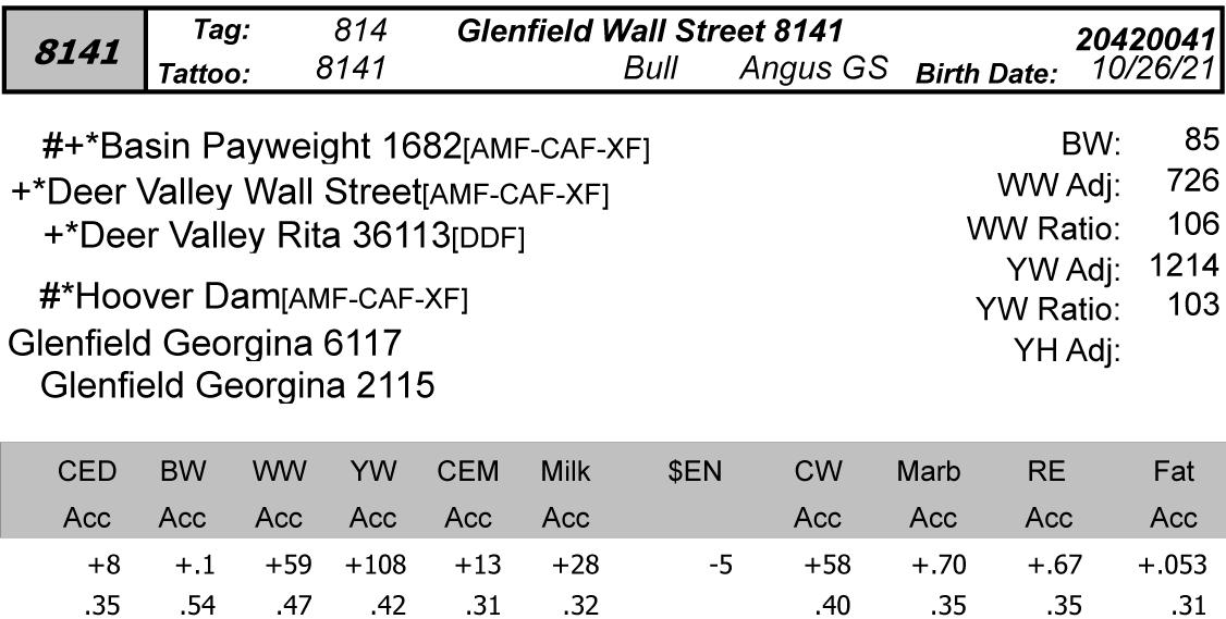 50 GLENFIELD WALL STREET 8141 20420041 ANGUS GS Birth Date: 10/26/21