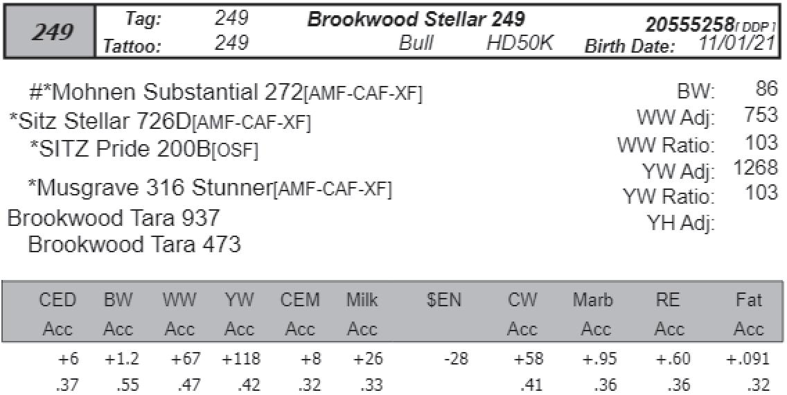 BROOKWOOD STELLAR 249 20555258 DDP HD50K Birth Date: 11/01/21 8
