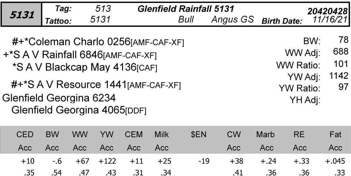 RAINFALL 5131 20420428 ANGUS GS Birth Date: 11/16/21