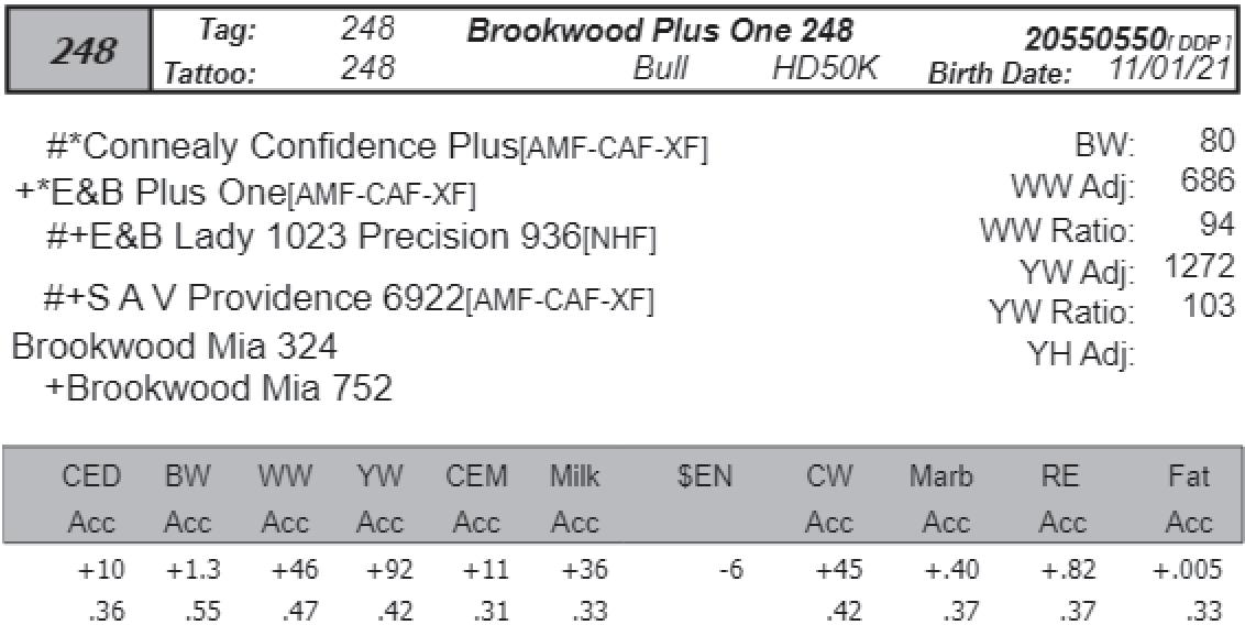 BROOKWOOD PLUS ONE 248 20550550 DDP HD50K Birth Date: 11/01/21